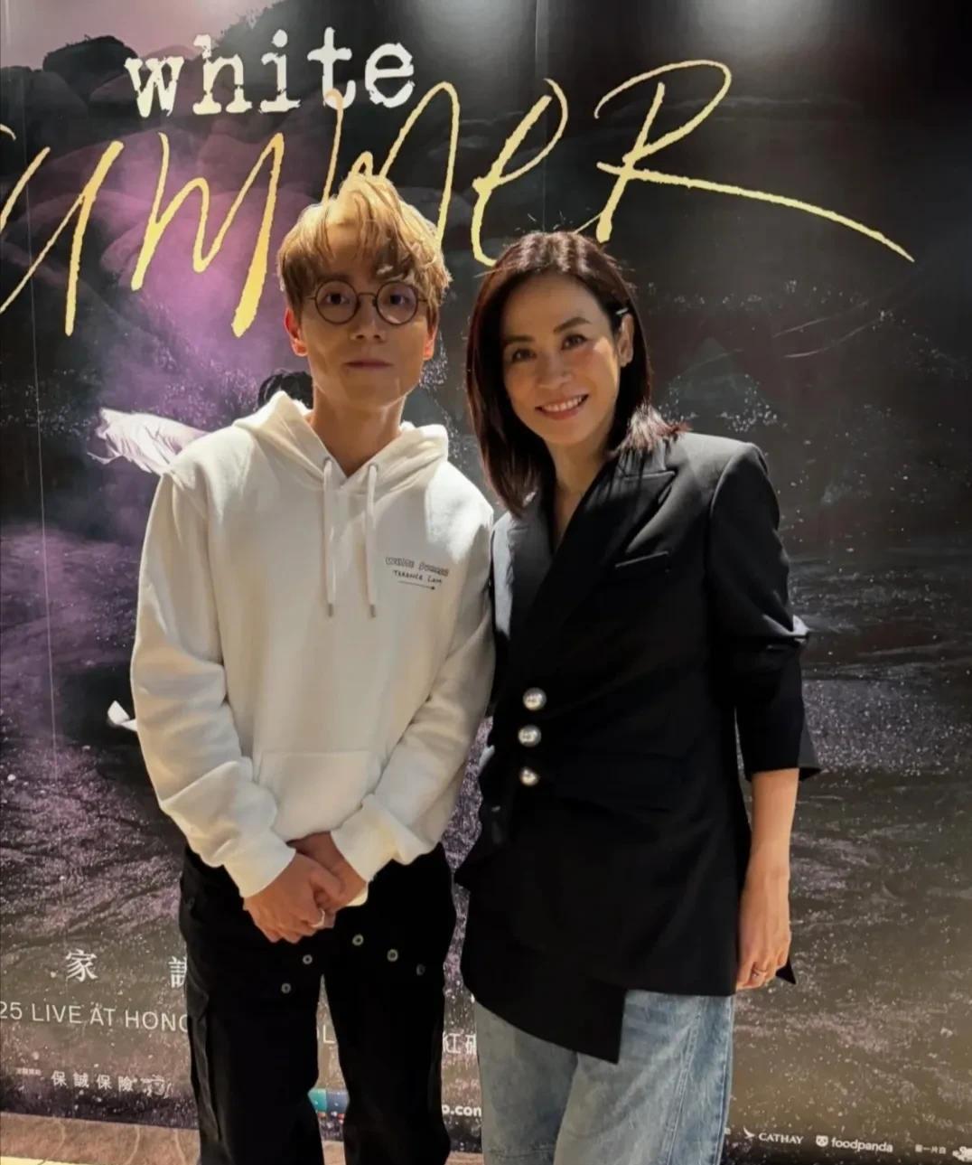 萱萱现身港星林家谦的演唱会。 她一身改版西装搭配牛仔裤出现在演唱会上,与陈奕迅女儿同框,头发浓密黑亮,脸上皮肤紧致,没发腮没发福,身材清瘦保持得很好。 包包也好美啊,与偶像萱萱同框,笑得一脸灿烂。 55岁的她,和34岁的林家谦在一块,也看不出年龄差,果然是TVB当家花旦,颜值抗打,花期好长,几十年了几乎没啥变化!