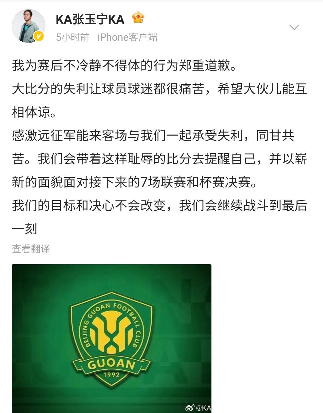 张玉宁道歉了,终于不狂了。 比赛踢了个0比6,本来就是丢人的事情,结果就因为粉丝