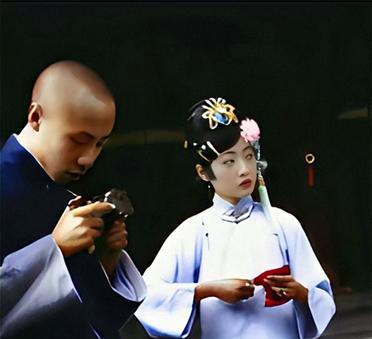 这是20世纪20年代,末代皇帝溥仪与婉容在天津。溥仪身穿传统的长衫,外套马褂,脚