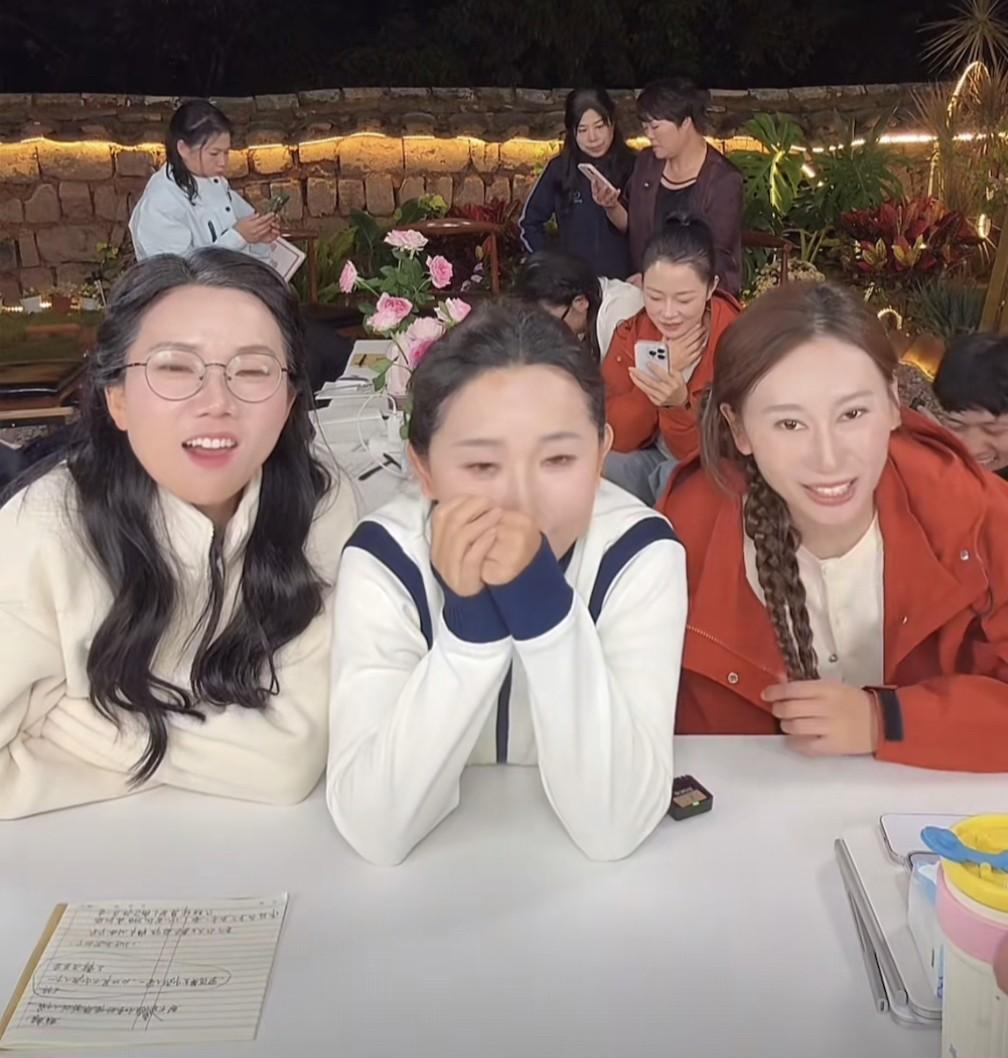 小凤、亚慧、小娜三人直播时,镜头外三位阿姨的反应形成了有趣的反差。红姐自始至终紧