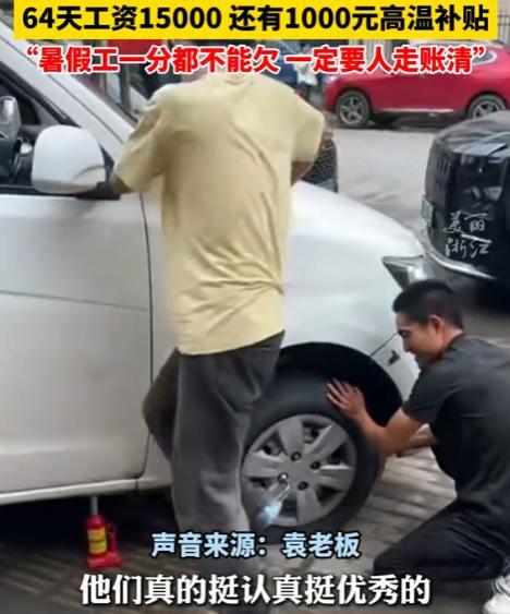 “这老板必须让他火!”浙江义乌,2个大学生暑假去义乌打工,64天工资算起来,每人应该是有15000元。可是发工资的时候,老板却只给他们一人5000的现金!大学生愣了一下,难道老板想克扣工资?可接下来老板的做法让他们泪目! 8月28 日,浙江义乌一则视频在网上传开,看完的网友都忍不住羡慕视频里的两个大学生。 事情得从两个月前说起,放暑假后,两个大学生不想在家闲着,也想给家里减轻点经济负担,自己赚点零花钱,就想着找份暑假工。 四处打听,最后找到了一家汽修店,跟老板谈好后,就开始了暑假的打工生活。 汽修店的活儿可不轻松,每天要跟着师傅学修车技巧,还要帮忙搬工具、打扫场地,有时候遇到需要加班的情况,俩人也没抱怨过。 眼瞅着开学的日子越来越近,俩大学生的暑假工期也到了尾声,心里开始盘算着这两个月能拿到多少工资。 之前跟老板说好的薪资,算下来64天干满,每人能有一万多元,这笔钱对学生来说可不是小数,足够覆盖大半年的生活费了。 到了上班最后一天,也就是发工资那天,俩大学生早早地来到店里,等着老板结算工资,可当老板把钱递过来时,俩人都愣了。 老板手里拿的是现金,每人只有5000 块,看着手里的钱,难道算错账了?还是老板想克扣工资? 毕竟之前也听过不少暑假工被拖欠、克扣工资的事儿,俩人越想越紧张,却又不好意思直接问。 没等他们开口,老板接下来的举动就让他俩瞬间红了眼,老板笑着摆摆手,接着拿出手机,当场给俩人各自转了11000 元。 更让人感动的是,这些钱除了他们的工资以外,每个人还有1000元的高温补贴! 老板解释说,这俩月天气热,汽修店又没什么凉快地方,俩人每天从早忙到晚,从来没有迟到早退,也没请过一天假,干活比不少成年人都卖力能吃苦,这份认真劲儿让他特别认可。 所以暑假工的工资一分都不能欠,必须做到人走账清,额外给的高温补贴,是对他们辛苦付出的肯定。 俩大学生拿着现金,看着手机里的转账记录,一时间不知道说什么好,只一个劲儿地跟老板说谢谢,还连连祝老板生意兴隆、财源滚滚。 老板被他俩的样子逗笑了,心情也跟着变好,又从钱包里拿出200元现金,给俩人各加了个红包,说算是给他们的开学祝福,希望他们回去好好读书。 旁边的同事把这一幕拍了下来,发到了网上,没成想很快就火了,网友们看了视频,都被这个老板圈粉了。 有网友说,这样的老板哪里找?还招人吗?我也想去打工! 还有网友说,这老板有格局,现在很多老板连正式员工工资都想拖着,这个老板对暑假工这么大方,太实在了,羡慕这两个大学生,运气也太好了,遇到这么好的老板。 甚至这段视频火了之后,不少人特意打听这家汽修店的位置,说以后车子有问题就去这家店修,就冲老板这份实在劲儿。 对此,你怎么看? 信源:美丽浙江——2025-08-28——《大学生在义乌打暑假工,#最后一天老板当场发工资 ,“暑假工一分都不能欠!”》