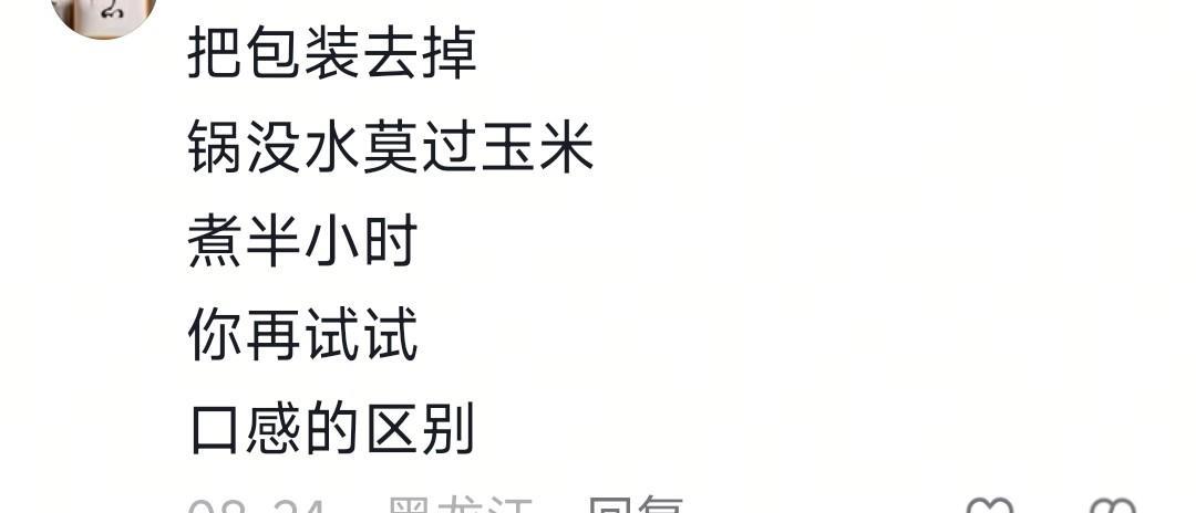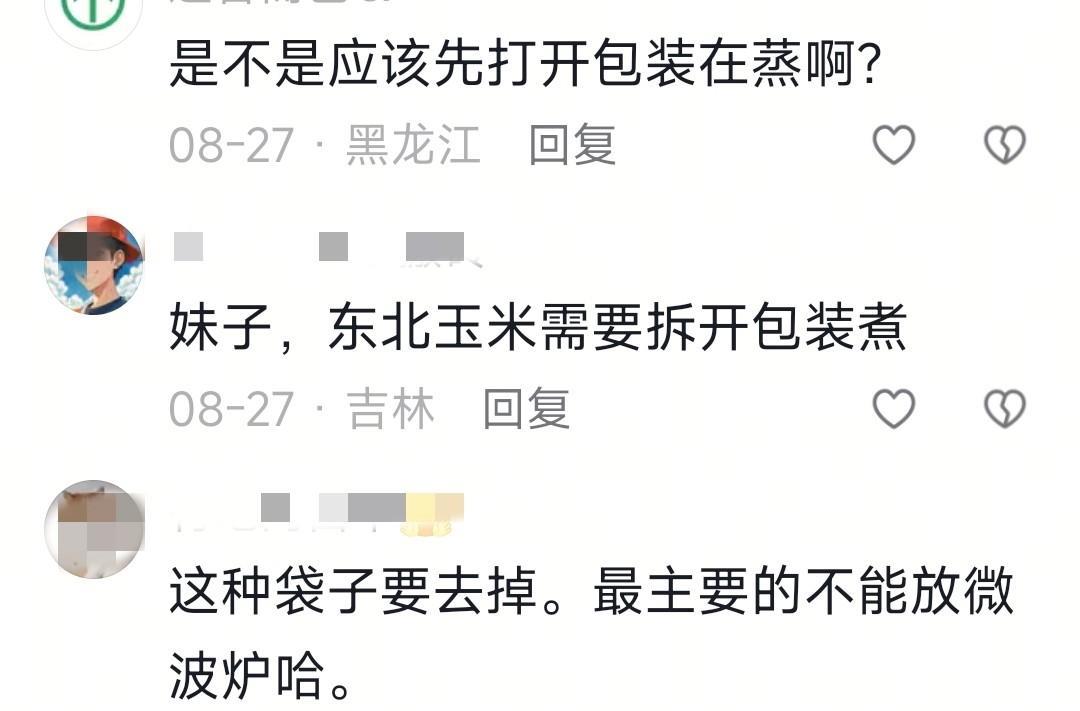与辉同行东北行买的黄糯玉米,看到这位粉丝的操作,把东北人吓出了一身冷汗! 一位粉丝在抖音展示了自己在与辉同行黑龙江买的黄糯玉米。 这款黄糯玉米牌子是稻香金界沟的,我也买了,好像是10根22块8,价格倒也不贵,最主要是产地是在黑龙江五常。没错,就是那个因五常大米而出名的五常。 每一棒玉米都很大,金灿灿的,颗粒饱满,吃起来黏黏糯糯的,口感很好,不是南方那种水唧唧的玉米可以相比的。 要说南方人真的不会吃不会做北方的东西。因为这款玉米是事先煮好塑封的。这位网友的操作也吓死个人。她将玉米连同塑料包装,直接放在蒸屉上蒸。 不是,都大人了,就没有一点常识吗?塑料制品加热肯定会有毒的。虽然咱也没仔细看商家的包装袋上有没有注明怎样蒸煮。但这般操作显然是不行的。 我每次都是把袋子剪破,把玉米棒子拿出来,直接放在蒸屉上蒸15分钟。也有的朋友是去掉外包装直接放在水里煮的。但我更喜欢吃不带水,稍微干糯一点的感觉。 当然还有人是放在微波炉里面叮个三四分钟的。如果想吃烤玉米,放在空气炸锅也不是不行。前提是一定要把外包装拆除了。 要我说这位网友如果不会做的话可以咨询东北人啊,不都说了董宇辉卖东北货品,全东北人都做售后吗?但凡吱一声,热心的东北人肯定会对你言无不尽的。你看评论区把他们急的呀。[我想静静][我想静静] #东北黄糯玉米#