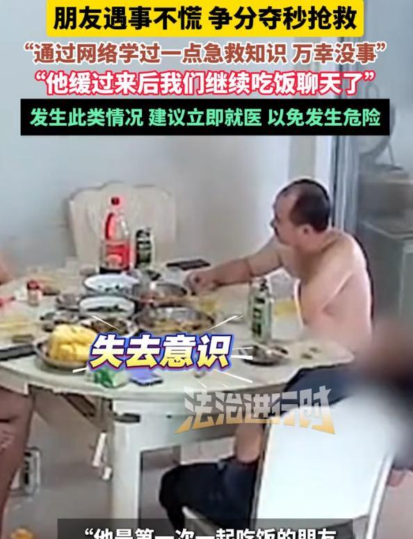 担心的事情还是发生了!广东珠海,几名男子在家中聚餐喝酒,不料,几人聊天过程中,一名男子突然整个人往椅子上一倒,朋友还以为是喝醉了,可叫了几声都没有回应,瞬间意识到不好,好在有朋友在网上学过一点急救知识,这才把男子给叫醒! 几个男人正围坐在餐桌旁推杯换盏,酒过三巡后,其中穿灰色T恤的男子突然整个人向后仰,后脑勺重重磕在椅背上,原本举着酒杯的手软绵绵垂下来,酒液顺着桌沿滴在地板上。 最先发现异常的是坐在对面的红衣男子。他刚夹了块烧鹅,抬头就看见朋友歪着脑袋,嘴角还沾着酱汁。"老张(化名),醒醒!"他笑着用筷子敲了敲对方面前的盘子,可对方连睫毛都没颤动一下。这时其他人才注意到异常——老张的呼吸声变得又粗又重,脸色像被水浸过的宣纸,泛着不自然的青白。 "快打120!"穿条纹衫的男子跳起来,手机差点摔进汤碗里。但离得最近的蓝衣男子已经扑到老张身边,他想起上周刷短视频时看到的急救教学,颤抖着伸手去探朋友颈动脉。指尖传来的搏动微弱得像风中残烛,这个发现让他后颈汗毛都竖了起来。 "把枕头垫到他脖子下面!"蓝衣男子突然想起视频里强调的体位,抓起沙发上的靠垫就往老张头下塞。其他人手忙脚乱地挪开餐桌,给"患者"腾出空间。穿条纹衫的男子突然想起什么,翻出老张的手机解锁后塞进他手里:"老张,你女儿刚发消息说数学考了全班第一!"这个平时用来打趣的梗,此刻却带着说不出的慌乱。 蓝衣男子跪在瓷砖地上,双手交叠压在老张胸口。他记得视频里说成人心肺复苏要压五厘米深,可每按下去三厘米就听见自己骨头在响。三十次按压后,他捏住老张鼻子做人工呼吸,温热的酒气扑在脸上,让他胃里翻江倒海。 "第七组了!"红衣男子盯着手机计时器喊。就在蓝衣男子准备做第八次按压时,老张突然抽搐着弓起背,喉间发出"咯"的一声。这个声音像开关似的,让他整个人瘫坐在地上。 老张睁开眼时,看见的是五个男人扭曲变形的脸——有人张着嘴忘了合上,有人保持着托举的姿势,还有人手机屏幕还亮着急救教程的页面。 后来赶到的医护人员说,老张是酒精刺激引发了急性喉头水肿。这种病发作时,喉咙会像被无形的手掐住,患者往往在几分钟内就会因窒息昏迷。更危险的是,醉酒状态下的人舌根容易后坠,双重阻塞会让死亡率飙升。 "你们朋友那套急救措施虽然不规范,但关键动作都做对了。"医生指着老张脖子上的掐痕解释,"保持侧卧能防止呕吐物阻塞气道,持续呼喊能刺激患者神经,最关键的是及时发现了呼吸暂停。"他特别提到,普通人遇到这种情况,比起专业手法更重要的是立刻行动,"黄金四分钟"里每延迟一秒,生存率就下降10%。 现在那套出租屋里,茶几上还摆着半瓶没喝完的白酒。但几个男人喝酒时多了个习惯——总会有人把手机调成急救教程播放页面。老张说,昏迷那几分钟他做了个很长的梦,梦里全是女儿穿着学士服的样子。而蓝衣男子最近总在刷急救培训课程,他说要考个红十字会认证,"下次再遇到这种情况,至少能做得更标准些。" 这件事在小区业主群里传开后,物业连夜在公告栏贴了急救知识海报。有天傍晚,穿条纹衫的男子看见蓝衣男子在楼下教几个遛娃的妈妈做心肺复苏! 你身边有人学过急救吗?如果遇到类似情况,你会选择立刻施救还是等待专业人员?欢迎在评论区分享你的看法。