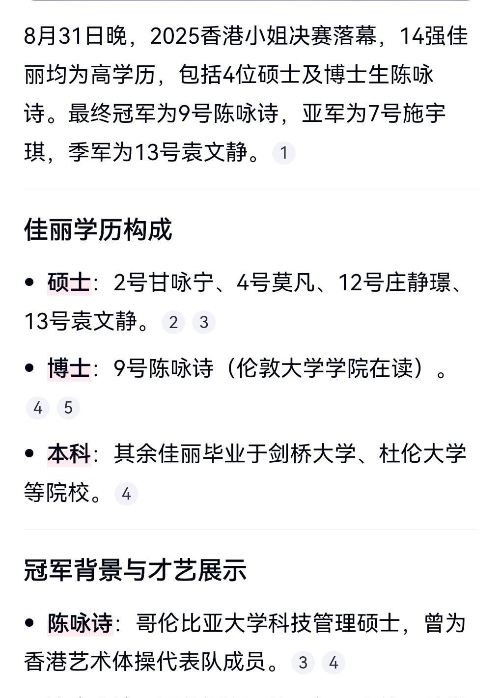 这也太巧了吧。 香港小姐要这么高的学历干什么? 这是经过干预选出来的吗?为什么1