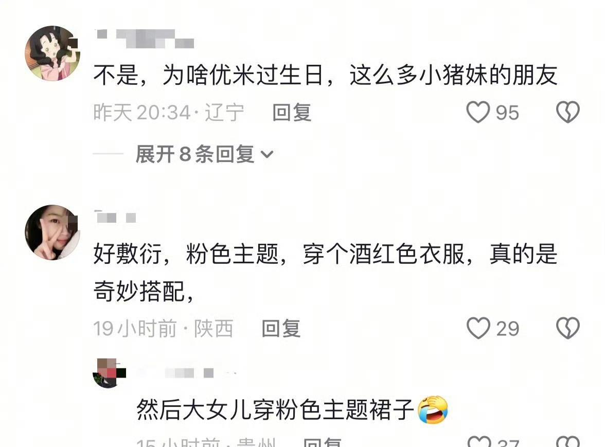 韩安冉对两个女儿的差别对待,从生日排场就能看得明明白白。大女儿小猪妹过生日,又是游艇派对又是无人机表演,仪式感拉满;到了优米周岁,却只在小区里简单摆了一桌,请来的还多是小猪妹的朋友。 更让人在意的是,优米周岁的KT板上特意加了小猪妹的名字,本该是主角的优米只穿了条红波点裙,反观小猪妹,却穿着和背景色调相搭的亮片礼裙,妥妥的“抢镜”配置,这份偏心实在太明显了。