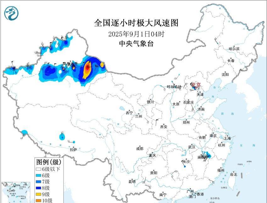 降温超过18度,阵风高达14级,新疆受冷空气影响明显 昨天开始,一股明显冷空气开始自北向南影响新疆,新疆部分高海拔、风口地区风力很强,托克逊克尔碱镇、十三间房国家站均出现14级阵风,最大风速44米每秒。大风下降温十分剧烈,至9月1日上午11时,新疆东部、甘肃西北部24小时同比降温8度以上,部分地区降温18度以上。 冷空气还将南下,甘肃已发布省级沙尘暴蓝色预警和强对流黄色预警,今晚内蒙古西部、甘肃中北部等地注意防范。
