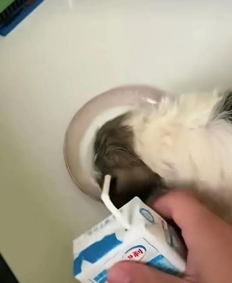 下班的路上下起了雨,在一处墙边看到一只被遗弃的小奶狗在雨中被冻的瑟瑟发抖。我知道如果没有人救助,它大概率不能存活。毕竟是一条生命,我弯腰抱起狗狗把它带回了家,用吹风机和干毛巾弄干浑身湿透的狗狗,给它倒了一盒牛奶喂它吃。它应该是太饿了,一盒牛奶很快喝的干干净净。