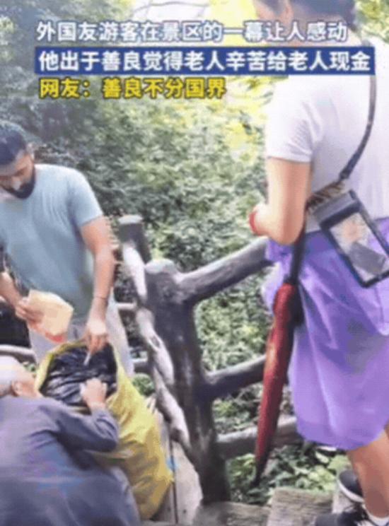 外国人在中国破防了!一对外国夫妻在景区游玩,突然看到一位拾荒老人,抬着一个大麻袋,出于善良,他们觉得老人辛苦,不仅给了老人现金,还准备将刚买的煎饼给老人吃,而且很有礼仪,他双手把煎饼递给拾荒老人,虽然老人没有接受!网友:善良不分国界。 景区里人来人往,大家都沉浸在美景之中。这对外国夫妻也不例外,他们一边欣赏着自然风光,一边体验着当地的文化氛围。 然而就在他们漫步于木质栈道时,目光被一位拾荒老人吸引了过去。老人身形佝偻,正艰难地抬着一个大麻袋,每一步都显得那么沉重。麻袋看起来鼓鼓囊囊的,装满了老人辛苦收集的废品。 外国夫妻看到这一幕,心中泛起了涟漪。他们觉得老人如此辛苦,想要表达自己的善意。于是,他们毫不犹豫地从钱包里拿出一些现金,走向老人。当他们把钱递到老人面前时,老人显然有些惊讶,眼中闪过一丝不知所措。 但外国夫妻的态度十分诚恳,他们用温和的眼神和动作示意老人收下。老人或许是被这份突如其来的善意打动,犹豫片刻后,收下了现金。 但这还没有结束,外国夫妻看到老人疲惫的模样,想到自己刚买了煎饼,便打算将煎饼也送给老人,希望能让他填填肚子。 他们双手捧着煎饼,礼貌地递到老人跟前。这个动作虽小,却充满了尊重与关怀。然而,老人却摆了摆手,没有接受这份食物。也许老人是觉得自己无功不受禄,又或许是不想给这对夫妻添太多麻烦。 周围的一些游客目睹了整个过程,纷纷投来赞许的目光。有人悄悄拿出手机,记录下了这温暖的一刻。很快,这段视频在网络上传播开来,引发了网友们的热议。大家被这对外国夫妻的善良所感动,同时也为拾荒老人的朴实而感慨。 从这起事件中,我们能看到善良是没有国界的。这对外国夫妻来自不同的文化背景,但他们内心的善意却与中国人相通。在异国他乡,他们没有选择冷漠旁观,而是主动伸出援手,用自己的行动诠释了人性的美好。而拾荒老人虽然生活艰辛,却依然坚守着自己的原则,这种质朴同样令人敬佩。 在当今社会,我们常常会听到一些关于冷漠和自私的负面新闻,但这件事却像一束光,照亮了人们心中善良的角落。它让我们相信,无论身处何地,无论来自哪个国家,善良和关爱始终是人类共通的情感。 同时,这件事也让我们反思自己。在日常生活中,我们是否也能像这对外国夫妻一样,敏锐地察觉到他人的困难,并及时给予帮助?我们是否能在面对需要帮助的人时,放下成见和顾虑,用真诚和尊重去对待? 这起外国夫妻景区善举的事件,不仅仅是一个简单的助人故事,它更像是一面镜子,映照出我们内心的善良与美好,也提醒着我们要始终保持一颗关爱他人的心。 希望这样的温暖故事能越来越多,让世界变得更加美好。大家看完这件事有什么感想呢?不妨在评论区分享一下吧。
