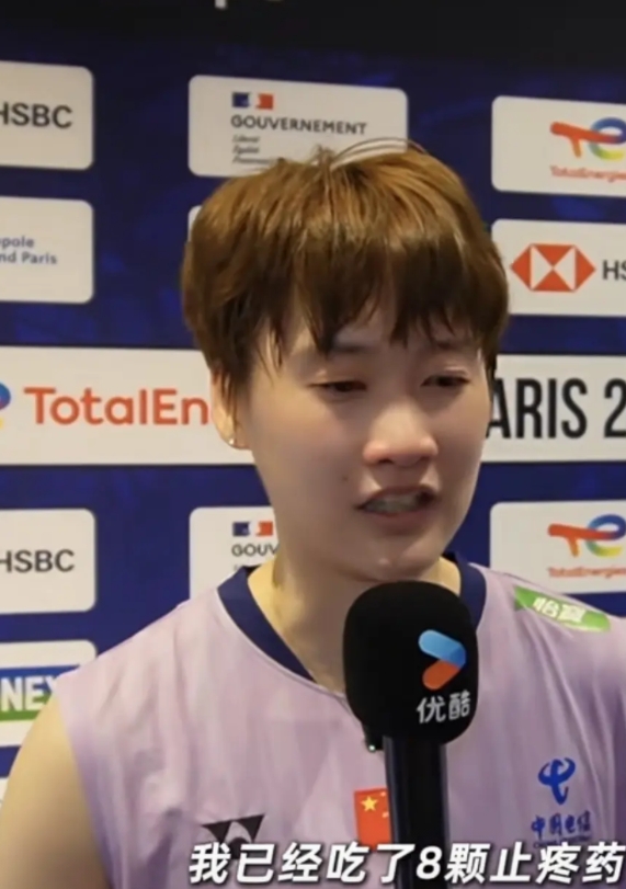 这就是命吧,即使过了安洗莹,却以这种方式输球,太遗憾了。赛后陈雨菲采访时哭了,她说吃了八颗止疼药,但比赛时还是很疼,没办法正常跑动。她很难过,很遗憾,领奖的时候,眼含泪水,让人看了心疼。