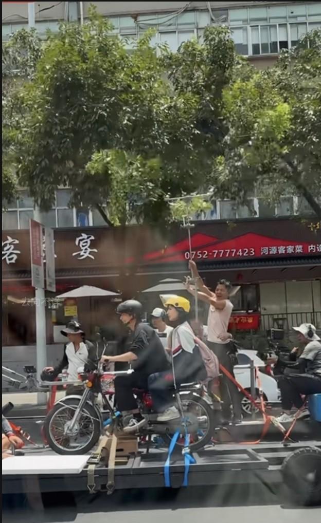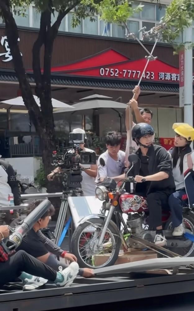 原来演员们骑摩托车的戏是这么拍的啊?难怪电视剧里主角们开车都不用怎么看路,原来压根不用他们开! 网友偶遇电视剧《野狗骨头》的拍摄现场,宋威龙骑摩托车载着张婧仪,只见摩托车被固定在拖车上,两人只是坐在上面进行对戏,由拖车拖着前进,一旁还有人有秩序地转动着树枝,模拟骑车过程一旁移动的树影。这实际拍摄场景还挺搞笑的。 想想这样拍摄也有道理,毕竟更安全演员可以专注于表演,摄影机拍出来的画面更稳定。就是挺考验演员信念感的,搁我上去真有点忍不住笑场! #张婧仪# #宋威龙# #野狗骨头# #电视剧幕后#