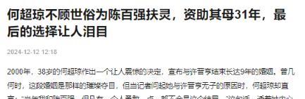 2022年底,陈百强母亲姚玉梅在广东省鹤山市人民医院去世,享年85岁。家人整理遗物时意外发现,自1993年起近三十年间,每月均有10万港币匿名汇入其账户,累计超3600万港币。这笔巨款始终用于支付护工、医疗及生活开支,默默守护老人安度晚年。 这个隐藏了三十年的秘密,随着一沓泛黄的银行回执被公之于众,也揭开了一段跨越时空的深情守护。 很多人看到这个故事,第一个想到的就是何超琼——澳门赌王何鸿燊的女儿,陈百强生前最重要的红颜知己。 时光倒回1981年,19岁的何超琼和23岁的陈百强在一次活动中相遇。 一个是豪门千金,一个是当红歌手,却因为共同的兴趣和话题成了无话不谈的好朋友。陈百强邀请何超琼出演《深爱着你》MV的女主角,镜头里两人相视而笑的画面至今让人动容。 私下里,他们的交情也很深。陈百强丢了心爱的手表,何超琼二话不说找遍各地买回同款送他;陈百强则回赠她一对珍珠耳环,何超琼一戴就是四十年,重要场合总能看到它的身影。 美好的时光总是短暂。赌王何鸿燊并不看好这段关系,在他眼中,艺人的身份配不上何家豪门。 更关键的是,1981年赌王原定接班人长子何猷光车祸去世,何超琼被父亲寄予厚望,不得不放弃文艺梦想,接受家族安排赴美攻读商科。 1991年,何超琼在父亲安排下与船王孙子许晋亨举行盛大婚礼,赌王送上10亿嫁妆,婚礼连办三天三夜。 那天陈百强以“哥哥”身份出席,看着自己心爱的人成为别人的新娘,还要强颜欢笑举杯祝福。婚后的何超琼并不幸福,许晋亨风流成性,两人各自生活,几乎没什么交流。 失去挚爱的陈百强陷入抑郁,1992年宣布退出歌坛,后来因用酒服安眠药陷入昏迷。 何超琼得知后立刻赶到医院,日夜守候了17个月,可惜最后还是没能留住他的生命。1993年10月,陈百强因脑衰竭去世,年仅35岁。 最让人震撼的是,何超琼不顾香港“已婚女性不宜为异性扶灵”的习俗,坚持为陈百强扶灵送行。 葬礼上她与陈百强母亲姚玉梅抱头痛哭,说了一句:“阿姨,百强走了,以后我就是您的女儿,我会照顾您。” 这句话,成了她三十年的承诺。 从那个月起,姚玉梅的账户每月都会收到10万港币汇款,备注永远只有简单的“生活费”三个字。这笔钱让失去独子的老人能够安度晚年,请得起护工,看得起病,不用为生计发愁。 何超琼细心到连花盆都选浅口的,因为“阿姨弯腰浇水不费力”;还在床头安装了直通保姆房间的呼叫器,“起夜能及时听见”。 2019年,已经80多岁的姚玉梅遭遇了一件伤心事。她为儿子修建的陈百强纪念馆被自称“歌迷代表”的人骗走了所有藏品,老人对着空荡荡的展馆泪流满面,反复念叨“我没看好你的东西”。 何超琼得知后立即暂停商业活动,派律师团队和安保人员连夜赶往台山,三天内就追回了所有奖杯、演出服和乐谱,还加装了防弹玻璃和24小时监控。 姚玉梅晚年最珍视儿子的遗物,何超琼就把陈百强的旧磁带转录成光盘,让保姆每周放给老人听。 2018年,她甚至特意安排私人助理跑遍欧洲,找回陈百强早年遗失的一块价值200万港币的腕表,那是他入行时父亲送的礼物。 当她把手表送到姚玉梅面前时,只说了一句:“阿姨,百强的东西,我帮他找回来了。” 2022年姚玉梅离世前,喝下最后半碗汤时还叮嘱保姆:“别告诉何小姐,别让她担心”。直到老人去世,家人才发现这个隐藏了近三十年的秘密。 那些每月准时到账的汇款,总额已经超过3600万港币。 何超琼自己的人生也有诸多不易。她与许晋亨的婚姻持续九年,最终在2000年离婚,没有子女。 离婚后她全心投入事业,凭借出色的商业才能成为家族生意的核心人物,掌控信德、澳博、新濠三大上市公司。如今她已经61岁,始终没有再婚,常年戴着陈百强送的珍珠耳环。 这段持续三十年的默默守护,没有轰轰烈烈的告白,只有每月准时的汇款单;没有甜言蜜语,只有实际行动的关怀。它让我们看到,真情从来不需要张扬,时间会为最真挚的情感作证。 或许这就是为什么那么多人被这个故事打动。在这个快节奏的社会,三十年如一日的坚持显得如此珍贵。 它让我们相信,有些情感不会因为时间而褪色,有些承诺不会因为距离而改变。 就像一位网友说的:“这才是真正的朋友,不求回报,只希望对方过得好。” 本文信源: 搜狐新闻 - 《何超琼不顾世俗为陈百强扶灵,资助其母31年,最后的选择让人泪目》 新浪新闻 - 《何超琼与陈百强的故事,感人的爱情!》