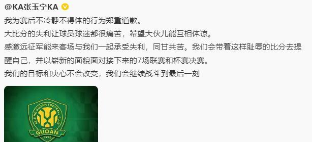 挺奇葩的,中超BIG4在第23轮后争相道歉! 北京国安0:6输给山东泰山以后,北