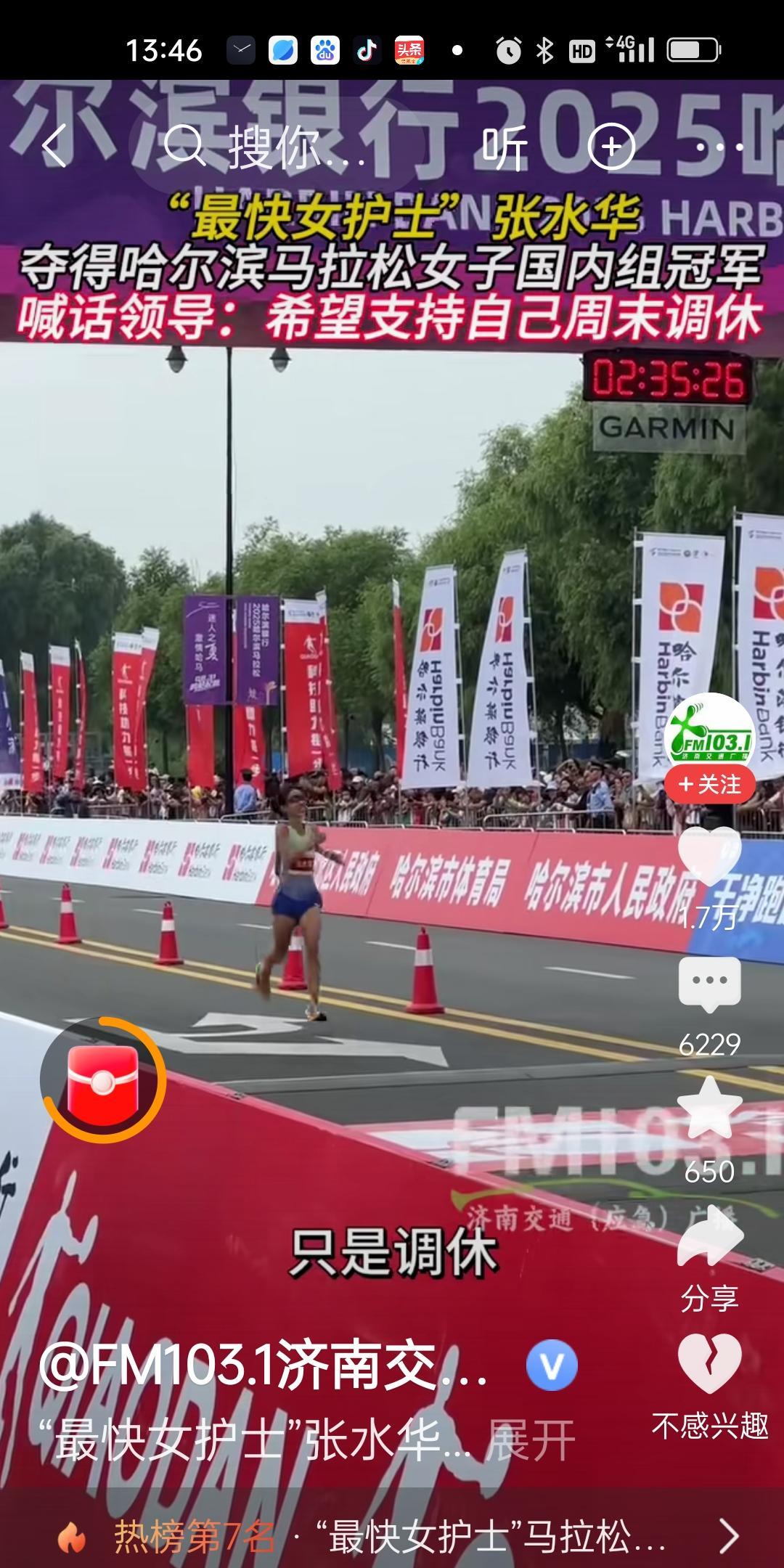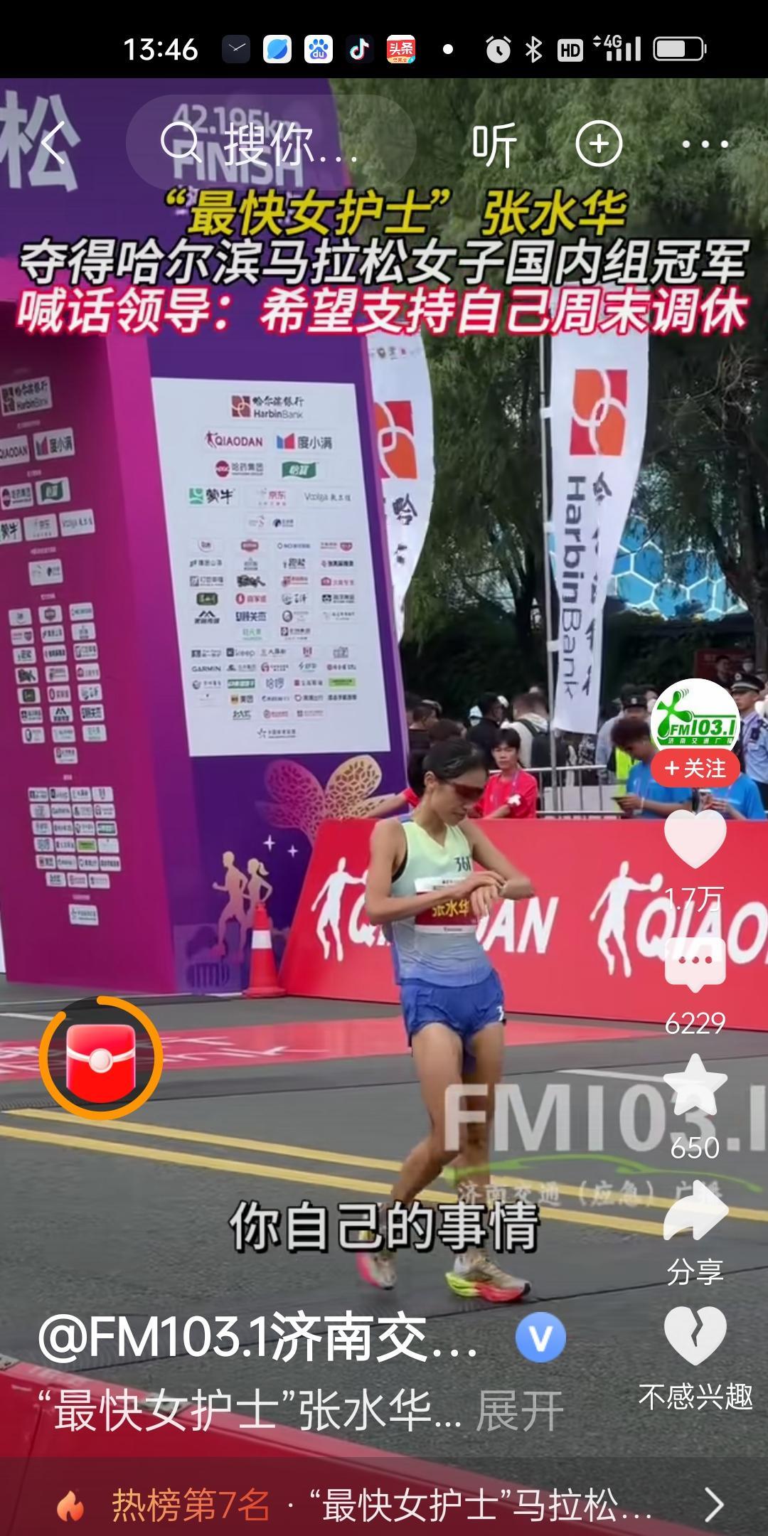 女护士哈尔滨马拉松夺冠,有怨言,情有所原,却没道理。 今年哈尔滨马拉松女子国内组