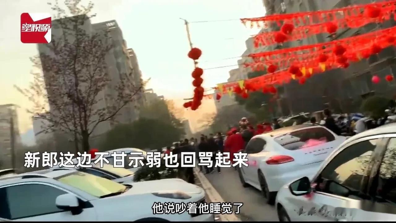江苏徐州,新郎早上6点到新娘家接亲,不料接亲队伍刚敲锣打鼓刚准备出发,楼上的邻居就嫌鼓乐队太吵直接破口大骂。大喜之日听到如此难听的辱骂声,新郎气得当场与之对骂十分钟!网友:骂得好,这次我挺新郎! 据婚车车队老 板杨先生表示,当天早上6点半新郎要出门去女方家接新娘子,新郎拿着手捧花刚走出单元楼栋,鼓乐队就开始敲锣打鼓准备出发。