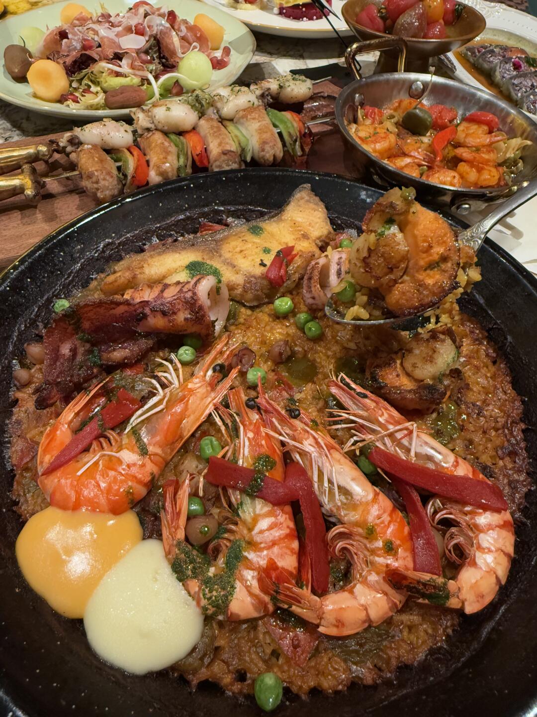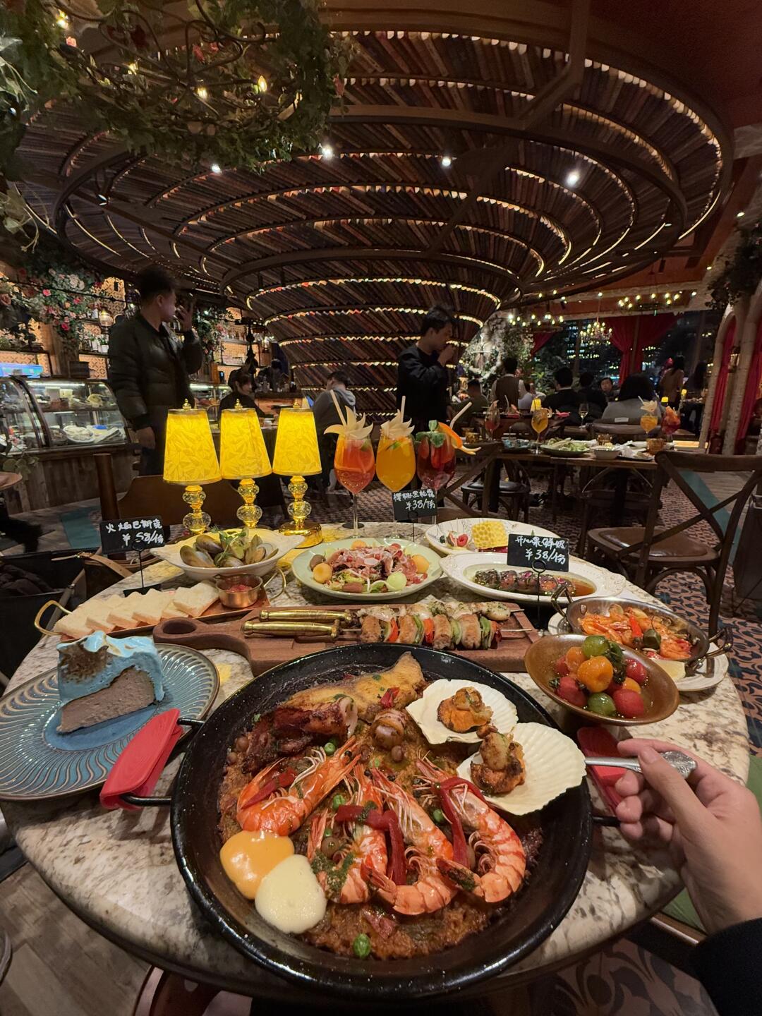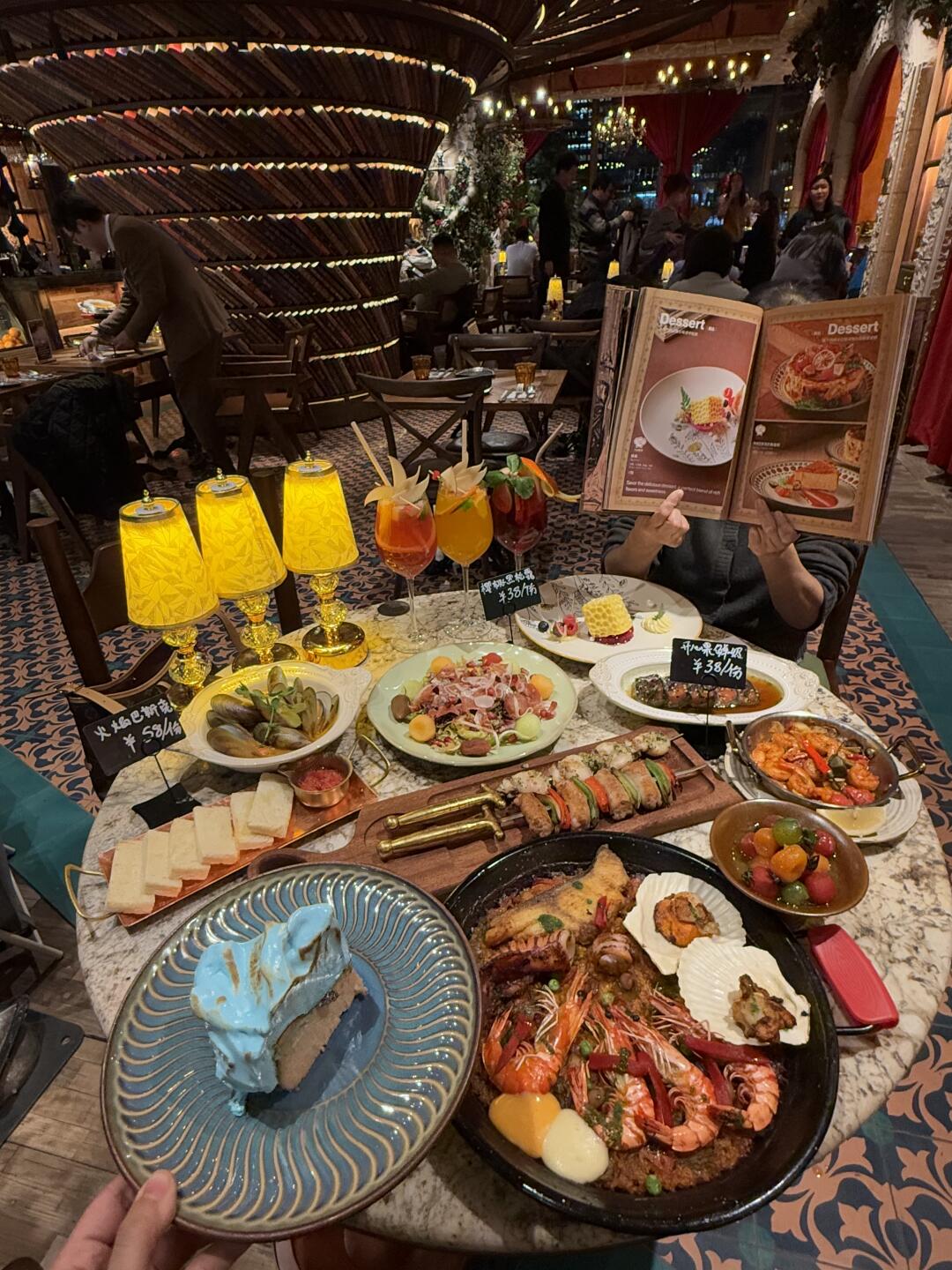 北京国贸新开的西班牙餐厅,整个餐厅是巴洛克风格,超级出片 靠窗位置可以拍到CBD大裤衩,景色绝美~ 菜品颜值味道都在线,性价比也超高~ - ✔️传统海鲜饭 五彩斑斓的海鲜让人欲罢不能,分量很足的鱿鱼、黑虎虾和扇贝,海鲜的鲜美与米饭的绵软交织在一起,仿佛置身于大海的怀抱中,不禁陶醉其中! ✔️金枪三文鱼双重奏 金枪三文鱼双重奏颜值爆表,金枪鱼的鲜美与三文鱼的细腻在口中交织,再搭配上特制的酱料,带来一场极致的味蕾享受 ✔️火焰巴斯克蛋糕 ️火焰巴斯克蛋糕口感hin丝滑,外皮烤的焦香内部绵密,芝士的浓郁与微微的甜度恰到好处,吃多少都不会腻! .
