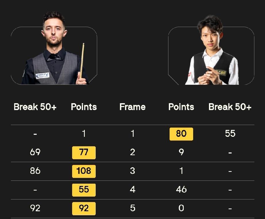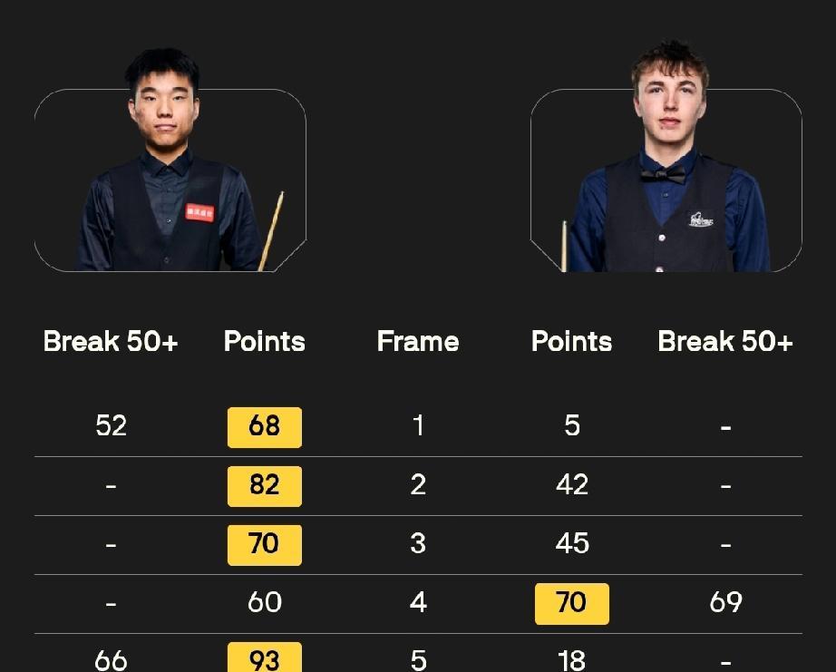 姚朋成5-1扎克·舒尔蒂 范争一4-1本·默滕斯 马克·塞尔比5-1