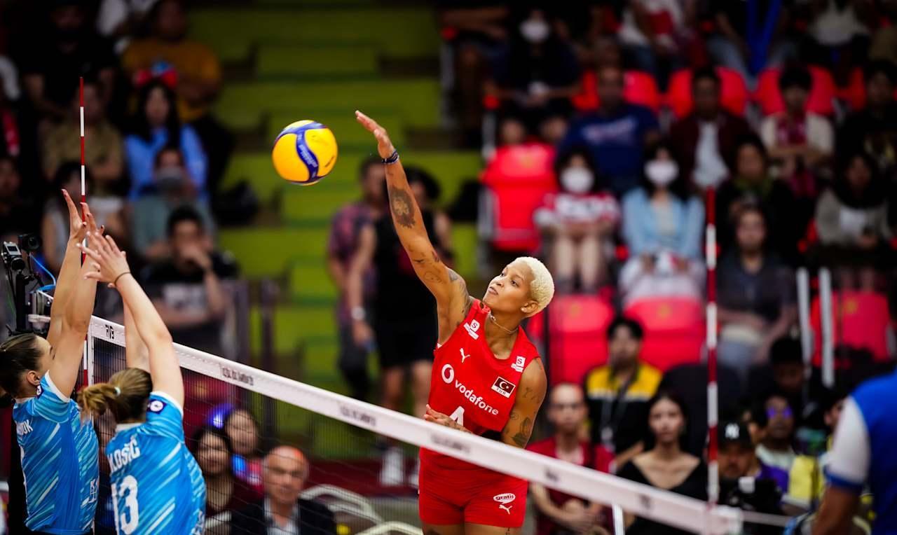 欧洲德比:38 岁的老将带领夺冠大热门土耳其获得最后一张八强入场券:土耳其战胜欧洲新锐晋级八强战美国 周一,在曼谷举行的国际排联(FIVB) 2025 女排世锦赛 16 强赛中最后一场比赛中,夺冠大热门土耳其击败了欧洲新军斯洛文尼亚,成为第八支确保晋级四分之一决赛的国家队。 第一局双份势均力敌,比分十分胶着,局末阶段,土耳其抓住了机会,30-28 结束了这一超长的回合;第二局斯洛文尼亚似乎没有了抵抗的决心,大比分落后;第三局 13 平后,土耳其一路领先,局末斯洛文尼亚挽救了多个赛点,但运气站在了土耳其这一面。 最终,欧锦赛冠军土耳其人以 3-0(30-28、25-13、29-27)的比分,晋级四分之一决赛。 38 岁的队长副攻兼队长艾达·埃尔德姆的回归对土耳其至关重要。她为球队贡献了 16 分,包括 2 次拦网、3 次 Ace 和第三局的制胜发球得分。 接应梅丽莎·瓦尔加斯得分全场最高,砍下 20 分,其中包括 1 次拦网。 斯洛文尼亚方面,进攻核心主攻法图玛塔·西拉获得 15 分,接应扎德科维奇同样获得 15 分。 土耳其在扣球(47-42)、拦网(10-7)、发球(7-3)和自失(16-20)环节均领先斯洛文尼亚。