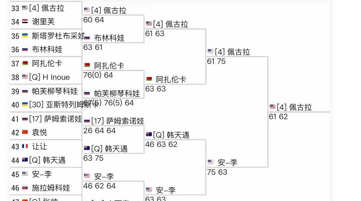 我个人认为她的排名帮助她很多一旦被爆了 就很难进入前十 佩古拉第一个晋级20