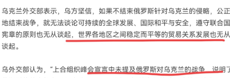 乌克兰表示,上合组织峰会宣言中未提及俄罗斯对乌克兰的战争,说明了莫斯科的外交努力已经失败,莫斯科未能把诸多成员国的立场统一到一个令俄罗斯满意的共同分母上。很显然,上合峰会未提及俄乌战争,这被乌克兰理解为俄罗斯的巨大失败。不过,乌克兰认为的失败,可能也仅仅是乌克兰这样认为而已。