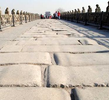 抗战胜利后,两名国军士兵在卢沟桥上站岗。卢沟桥上的士兵全副武装,身穿棉军衣,背着背包,打着绑腿,手握上了刺刀的步枪。 这是一名战备状态下的士兵。在北京,卢沟桥是很重要的位置与标志。当初,日军正是从这里打响了全面侵华的第一枪,史称卢沟桥事变。 卢沟桥行人与车辆不断。行人慢悠悠地走在桥面上。一辆马车拉着一车装得鼓鼓的麻袋行驶在卢沟桥上。此时,卢沟桥桥面平整光滑,可以随意通过行驶。 桥下的河面上结了厚厚的一层冰。可见,这一年的冬季,北京天寒地冻,极为寒冷。很少人知道,从过去到现在,卢沟桥桥面上的石料已经更换了多次。与过去更为不同的是,过去通行卢沟桥不需要收取任何费用,现在卢沟桥文化旅游区实行收费制度。