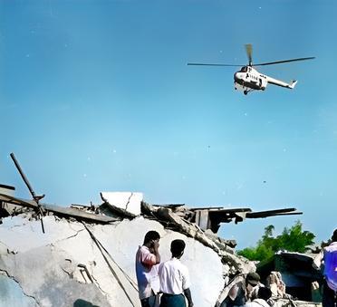 1976年,唐山大地震中,政府派出直升飞机飞往地震区救援伤员。解放军战士扛着铁锹等救援工具第一时间前往地震区。在一片废墟瓦砾中,解放军战士救出许多被埋在瓦砾废墟中的受伤人员。当时,医疗条件有限。许多伤员如果不能得到及时救治,很可能会有生命危险。 交通工具落后加上交通不方便,解放军战士凭着肩扛肩抬很难将地震中的受伤人员及时运出接受有效的治疗。为了减少伤亡人员,政府派出直升机前去救援。受伤人员被解放军战士集中到一起等待直升飞机的救援。虽然,当时直升机救援的伤员数量有限,但这也是救援最快的方法。 在救援的同时,直升飞机也带来了医疗队和救护队,还有大量的物资。这样也大大减少了地震中受伤人员的伤亡。