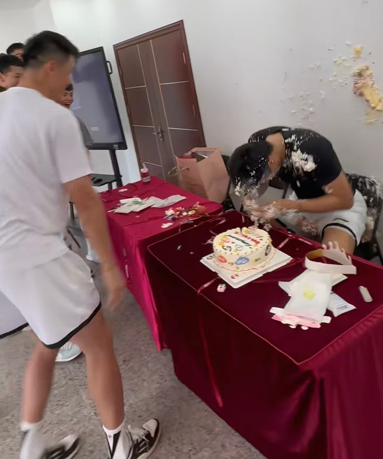 赵睿再次充当老6角色,跟周鹏一起给焦泊乔两个蛋糕洗脸。