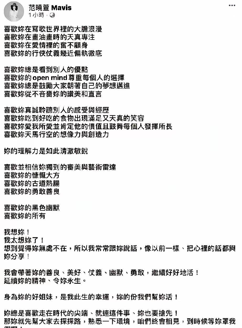 好一个范晓萱 这才是大S真正的铁姐妹吧 大S走了半年有余 她才走出来失去她的现实 还唱出来大S当年写的歌词 足以看出大S真的是个才女 别说生活了十年的汪小菲 就是具俊晔也hold不住她 她本该属于另一个星系 她的思想和处事太别具一格 但范晓萱从不用她炒作 直到过了半年后才出来 等路归路桥归桥后 她才告白她的铁姐妹 如果大S换个妹妹 可能结局也会改写呢