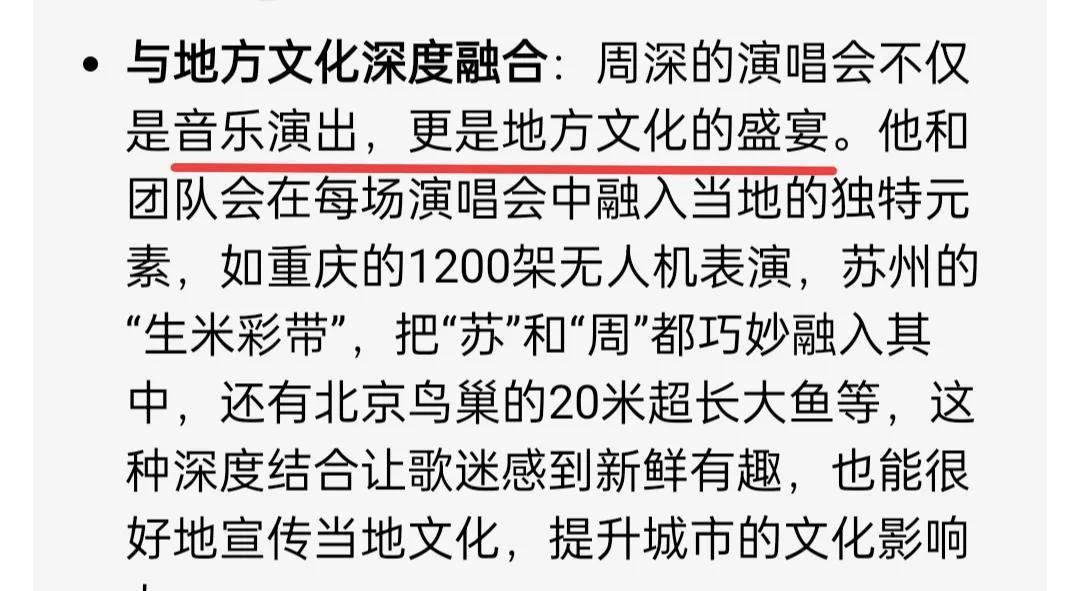 为什么各地文旅都在抢周深! 因为他能给这座城市带来巨大的经济效益,演唱会与当地文化深度融合,提升城市文化影响力。 有网友评论:我去哪个城市旅游,取决于周深在哪开演唱会! 是的,就拿今年暑假的太原,西安,贵阳来说,很多都是一家人来看演唱会的,周深粉丝群体年龄跨度大,在家长的认知里也是值得去看的歌手,所以全家出动跨省看演唱会的非常多,这就直接拉动经济从交通、餐饮、住宿延伸,顺带旅游了! 这样的香馍馍谁不抢,谁傻![呲牙] #周深#