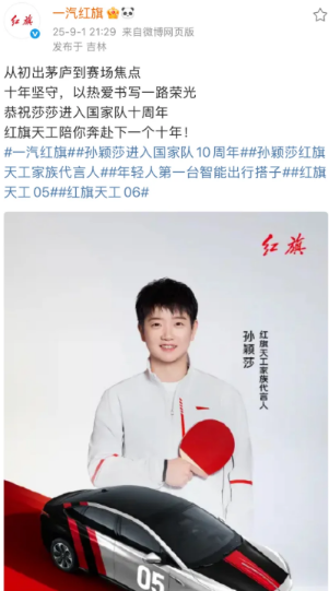 一直乐于借别家品牌宣传图的红旗,这回终于有自己的宣发图啦,不得不说,红旗天工选的这张莎莎广告图,身穿白色立领运动服,妆造干净清爽,一看就是板正大气,根正苗红的具象化!