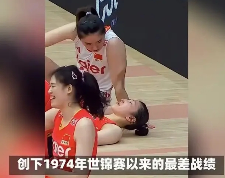 这个照片故意把女排教练杨昊删去了,看看李盈莹是在吴梦洁哭泣时与杨昊探讨战术问题。