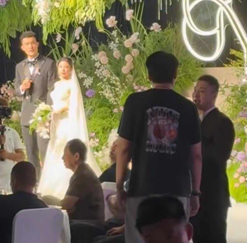 郭凯结婚,郭士强和邱彪指导都去了。 在婚礼现场,郭导为郭凯送去了新婚祝福,