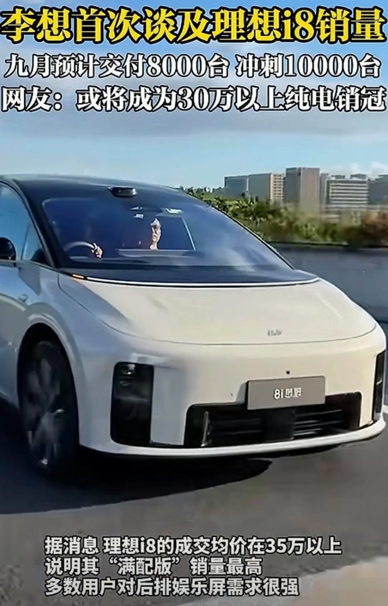 理想汽车销量大跌, 李想先生怎么说? 由于众所周知的原因, 理想汽车目前迎来了至暗时刻, 8月交付量仅有28529辆, 同比去年8月下降40%, 理想去年7-8月销量维持在5万台上下, 而如今仅有不到3万台! 好在理想汽车创始人李想并不着急, 据他所言这是产品切换时期正常现象, 全新纯电产品理想i8已经上市, 预计9月交付8000台、冲刺10000台, 而另外一款重磅新品理想i6已在路上, i6将会成为理想销量担当, 预计月销也在10000台以上!