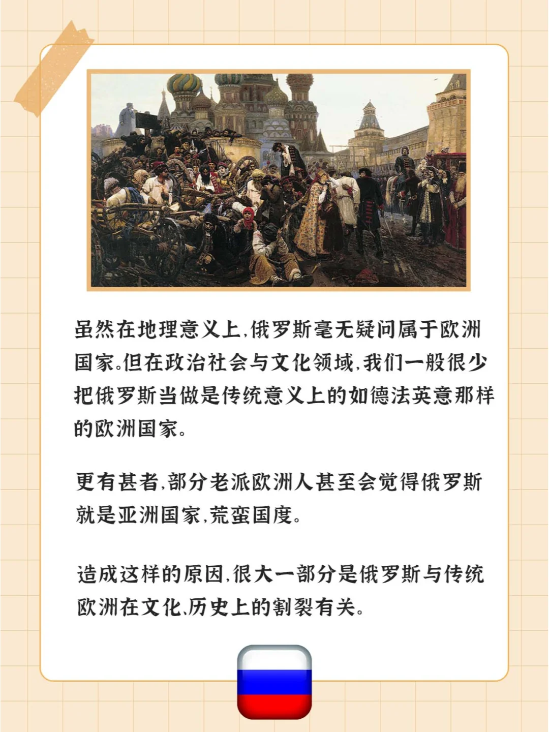 [害羞R]理论上,虽然俄罗斯同样属于“欧洲国家” [失望R]但地处欧洲边缘的她 [汗颜R]经常难以被“传统欧洲”所认同 [doge]根本原因是什么?