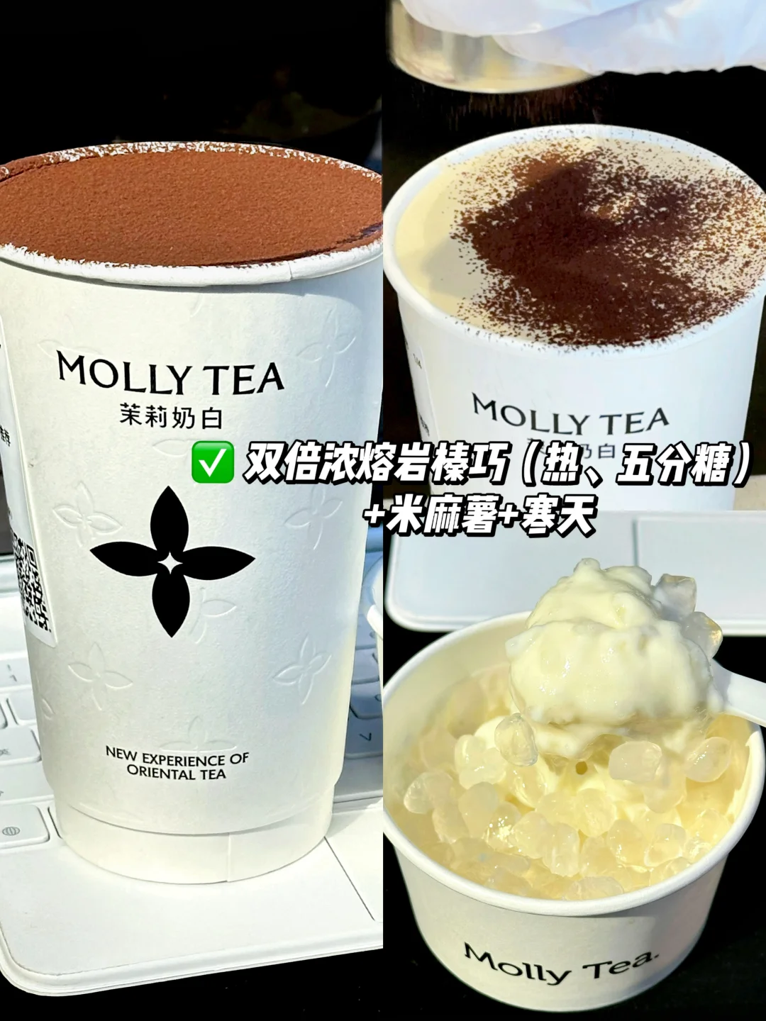 2️⃣双倍浓熔岩榛巧(热、五分糖)+米麻薯+寒天