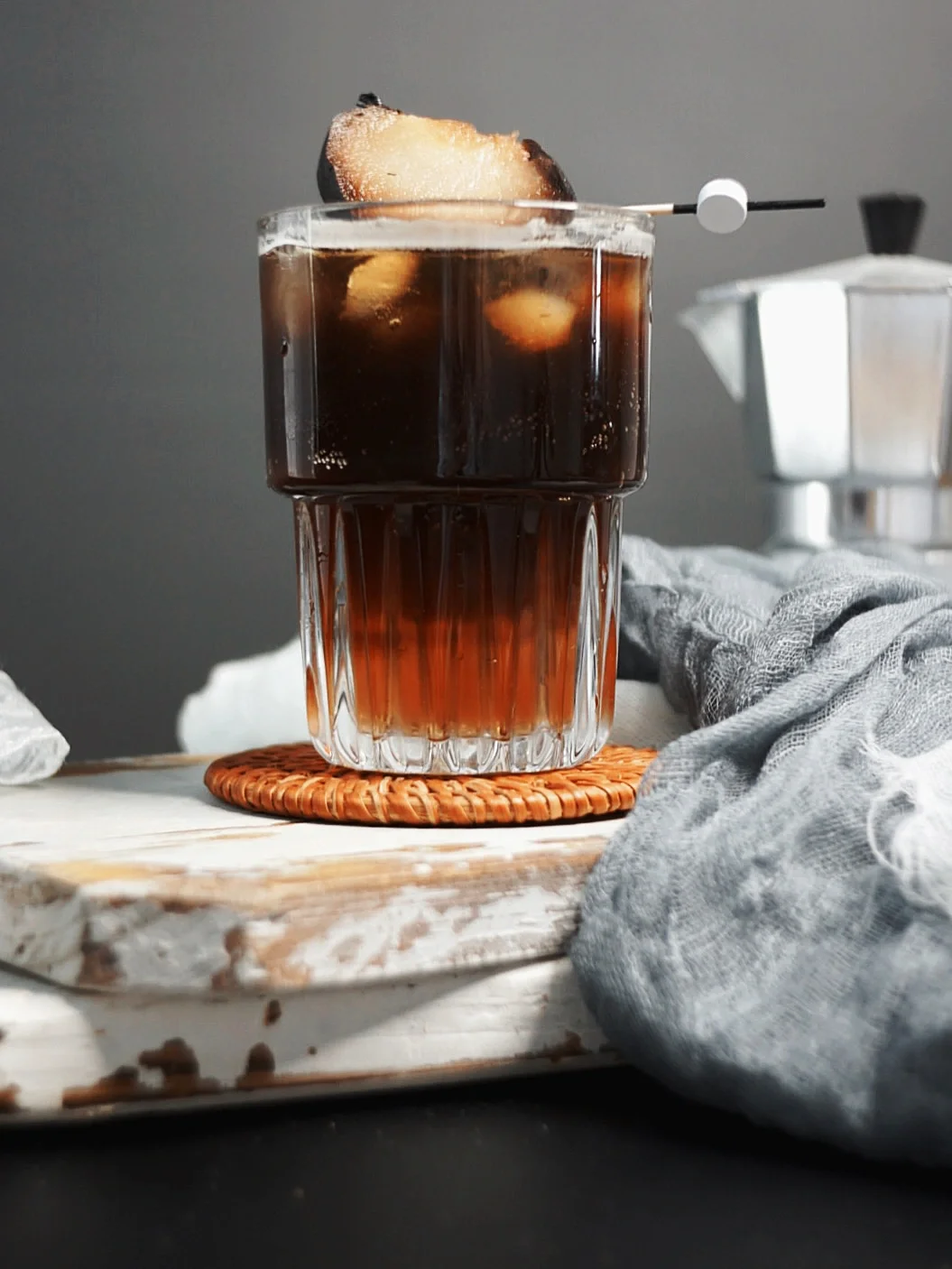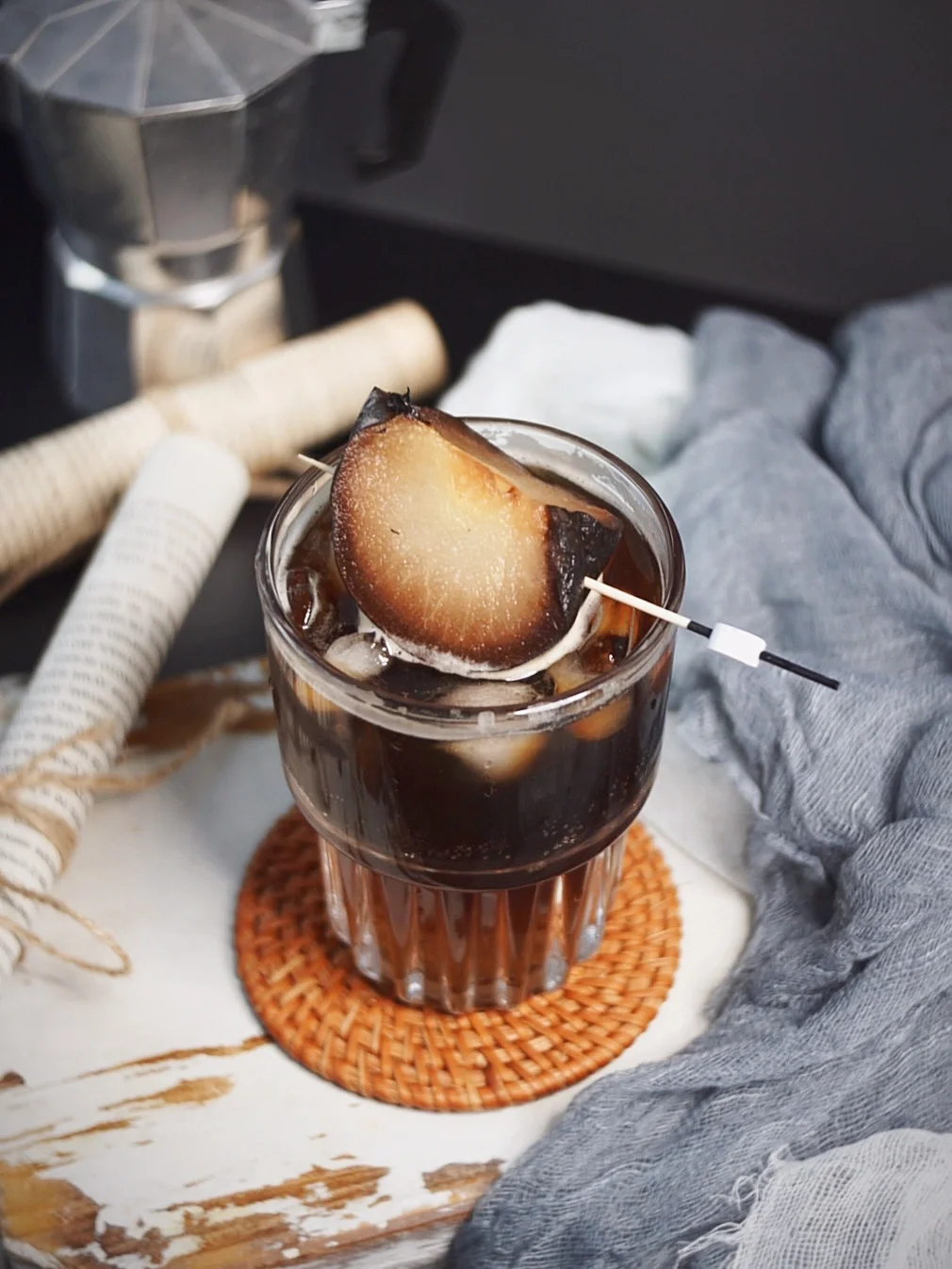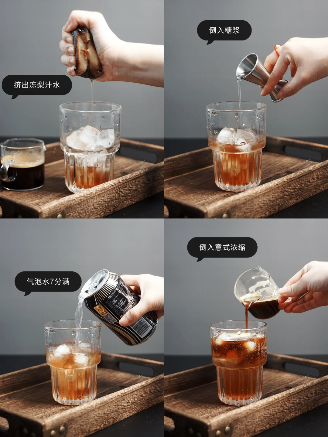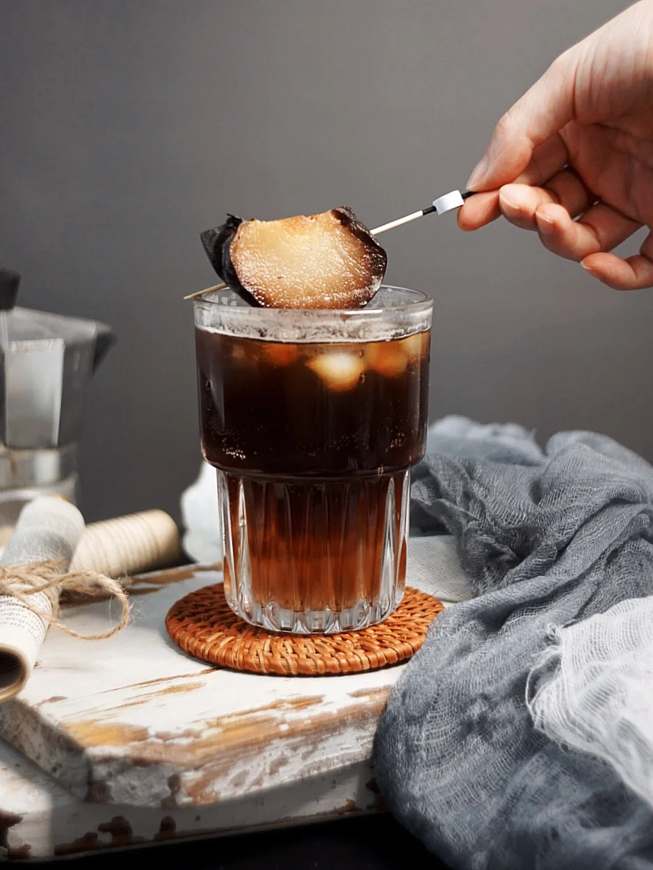 此时的我一边吃着冻梨,一边跟你们分享这杯有这浓浓东北氛围的特调咖啡☕ 真的不是我夸张,半个冻梨可以直接挤出半杯汁水,入口是那种敲清甜的口感,搭配气泡水和咖啡☕这一口下去,咖啡的炭烧和清甜的梨汁融合的恰到好处。 ❗️❗️❗️谁喝谁上头❗️❗️ · ☕【调饮步骤】 ❖冻梨半个挤出汁水 ❖依据个人口味加入15ml糖浆 ❖气泡水倒至7分满 ❖缓慢倒入萃取好的意式浓缩咖啡 🥀杯口放一块冻梨 · 有一说一❗️真的好喝❗️我觉着各大咖啡店可以都准备上了