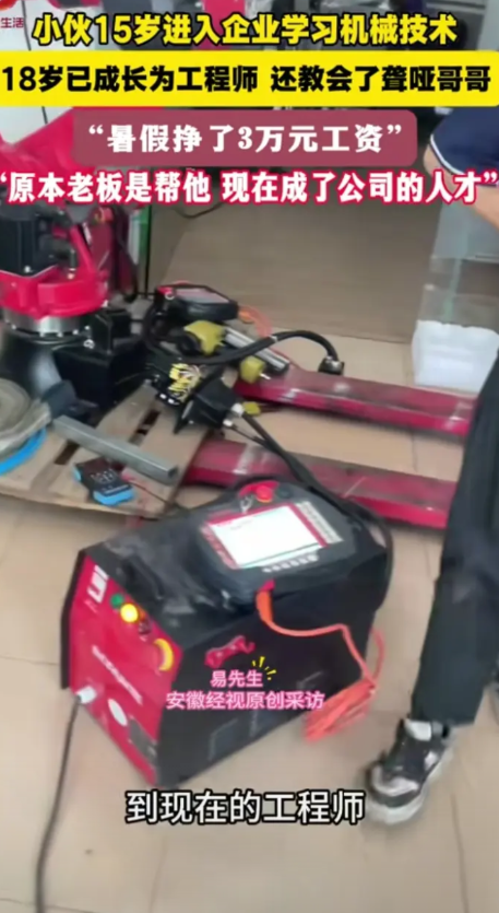 易先生介绍称,该小伙来自湖南,他家里有个姐姐在上大学,又有哑巴哥哥,想着帮助家里人,通过老表就认识到老板。老板了解了他的家庭情况,也希望能帮助到他,将他带入这个工厂的自动化设备领域,三年来每个假期都在学习。经过自己不断地勤奋努力,老板也细心地指导,从初级到中级到现在的工程师。他现在为了报答老板,愿意继续留在公司工作