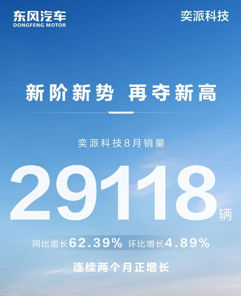 奕派科技8月销量291118辆,排名新势力榜第8位,岚图科技8月销量13505辆,东风嫡系自主新能源8月销量39459辆。 那么猛士科技和柳州风行销量是多少呢?目前没有报道! 其他相关联企业8月销量—— 东风日产11031辆,其中N7破万! 东风本田277辆 赛力斯湖北2509辆 赛力斯问界41029辆