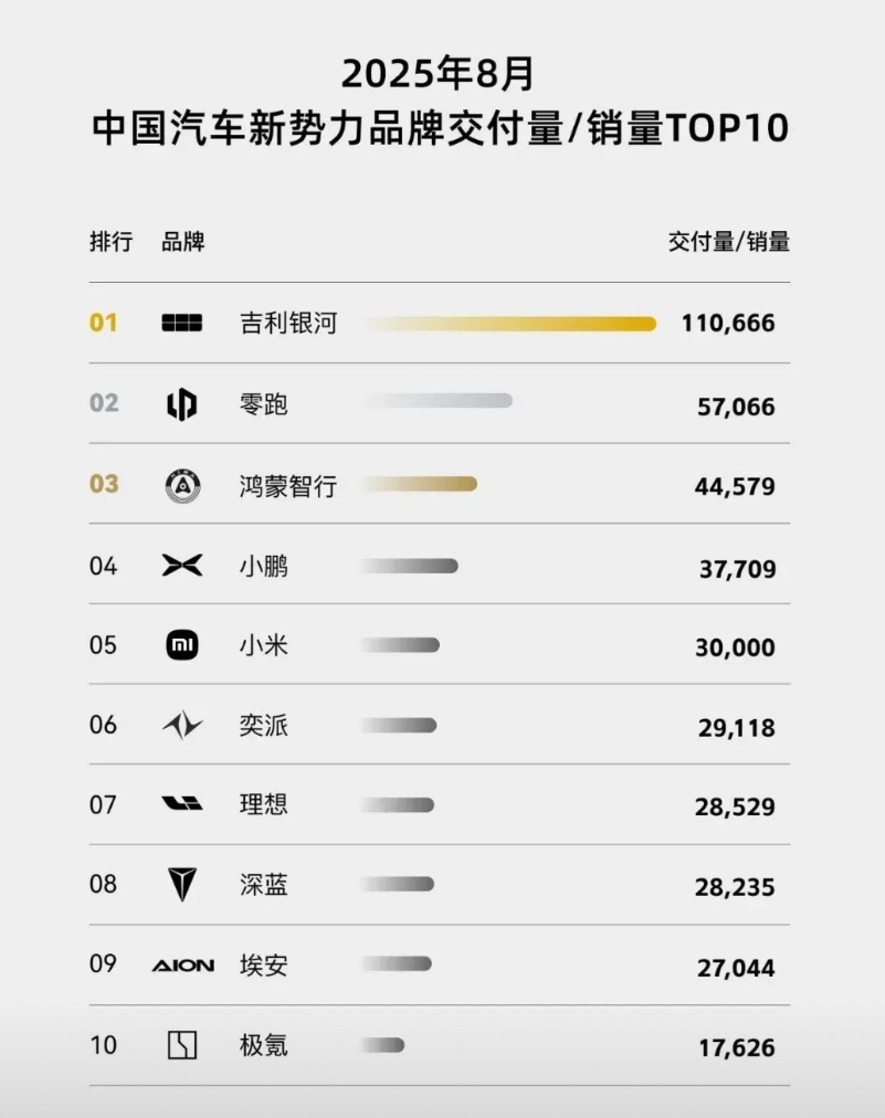 奕派科技8月销量291118辆,排名新势力榜第8位,岚图科技8月销量13505辆