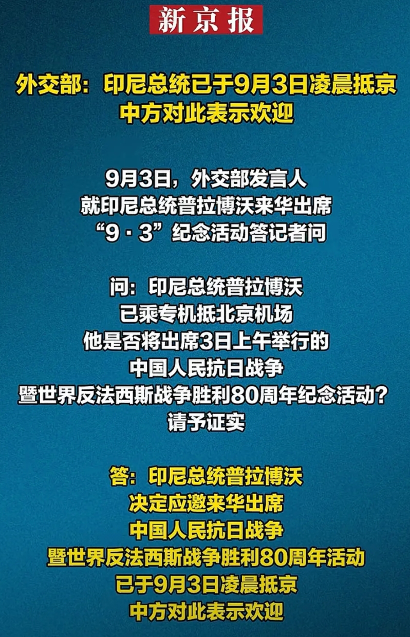 印尼的高铁真没白修建,印尼总统又改变主意了,凌晨飞过来要参加九三阅兵,本来国内那一摊子事处理不好,真的是来不了了。全世界也都认为他不会来了,没想到他还真给面子,把国内的事处理了一下,凌晨又决定跑过来参加阅兵了。