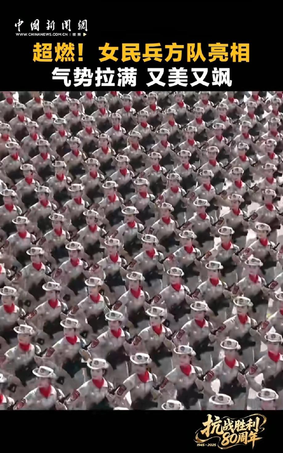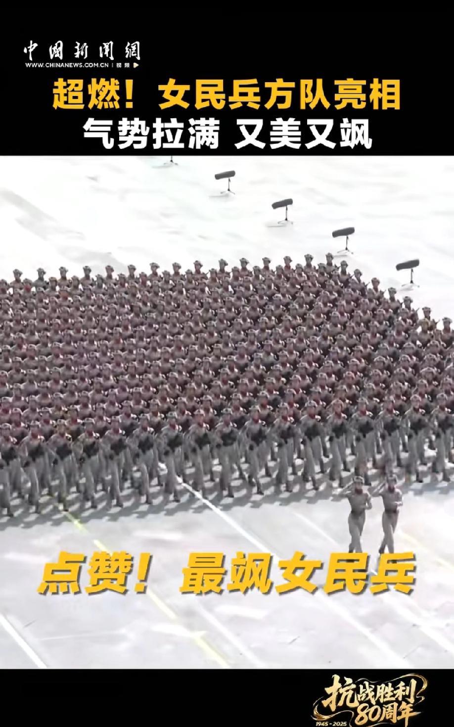 女民兵方队一亮相,那气势直接拉满! 她们真是又飒又美,活脱脱的“木兰军”,让人打心底里崇拜。英姿飒爽、坚毅挺拔,完美诠释了“巾帼不让须眉”,谁说女子不如男?这精气神儿,就是祖国强大的一种体现。 而且这队形和踩点是真的绝,拍出来的全部队形完全像一个整体,整齐划一得让人惊叹。有说裤子比裙装看着更舒服的,确实利落又精神。 #女民兵队列#