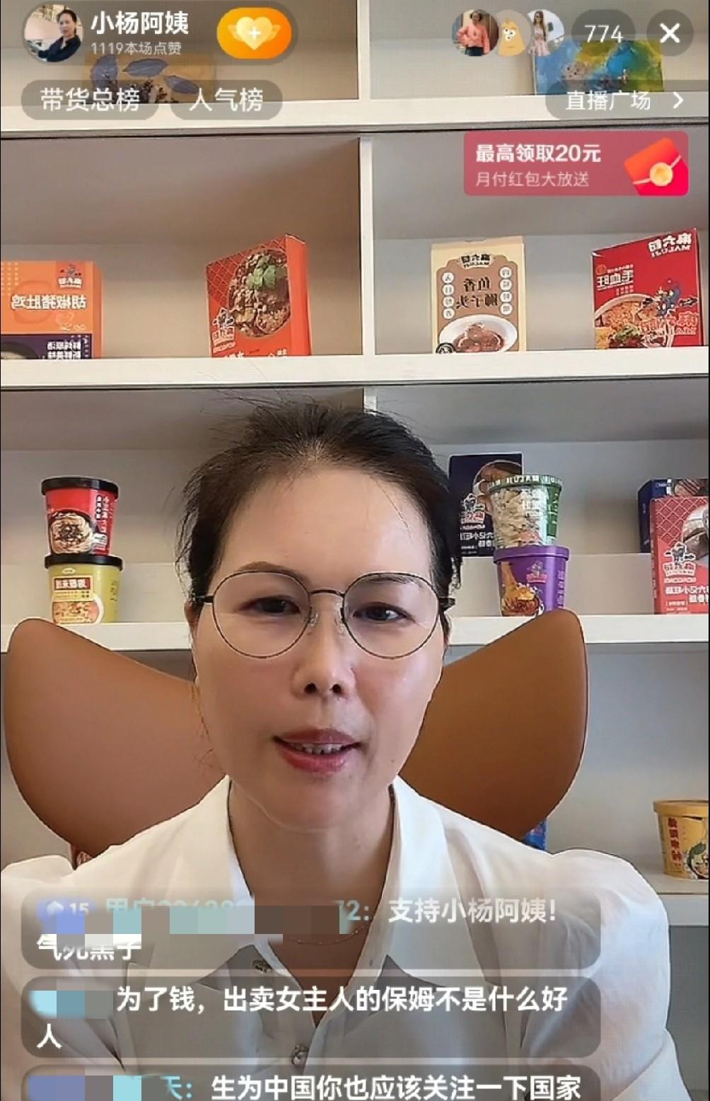 汪小菲家保姆小杨阿姨在早上正是阅兵的时候开直播卖货,被直播间的网友问她这个时间为