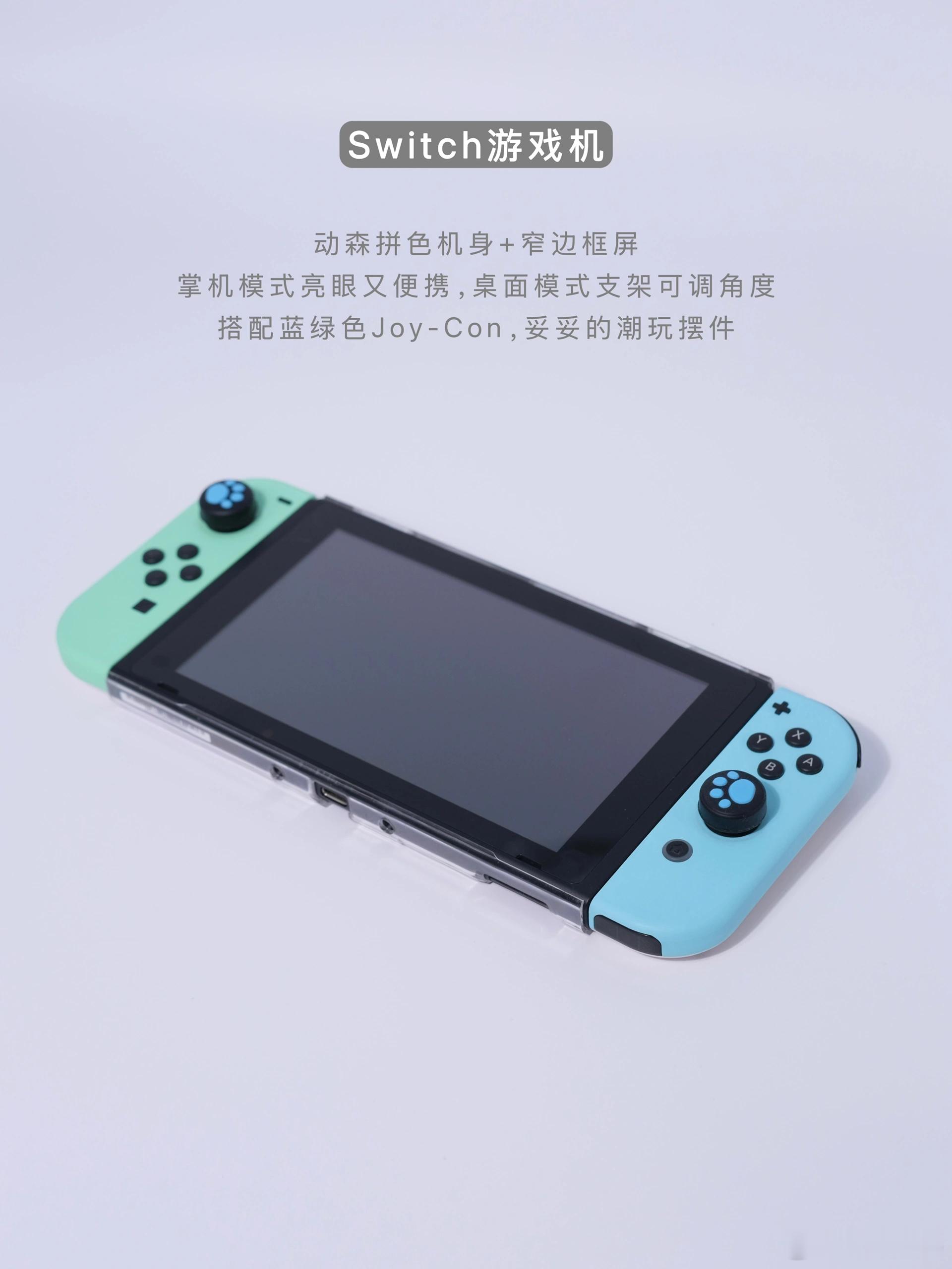 动森限定拼色机身+窄边框屏,掌机模式亮眼又便携;桌面模式支架可调角度,搭配蓝绿色Joy-Con,妥妥的潮玩摆件和颜值单品~