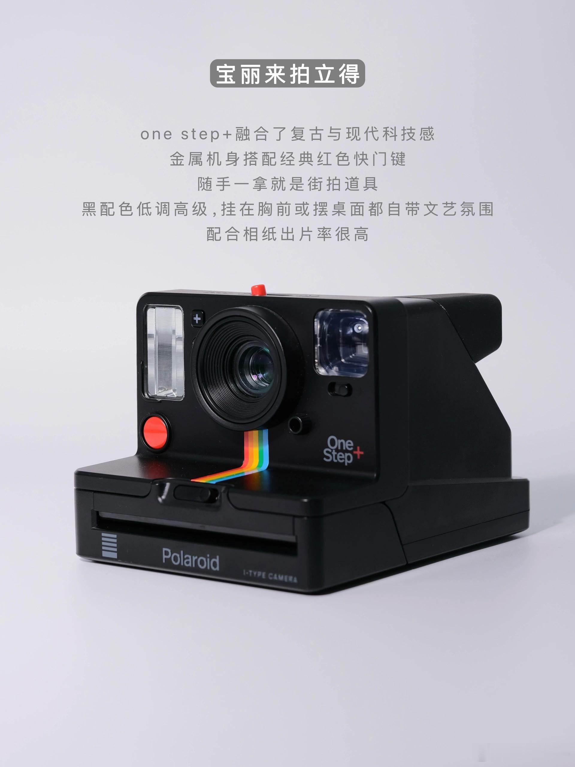 one step+融合了复古与现代科技感,金属机身搭配经典红色快门键,随手一拿就是街拍道具。黑配色低调高级,挂在胸前或摆桌面都自带文艺氛围,配合相纸出片率很高~