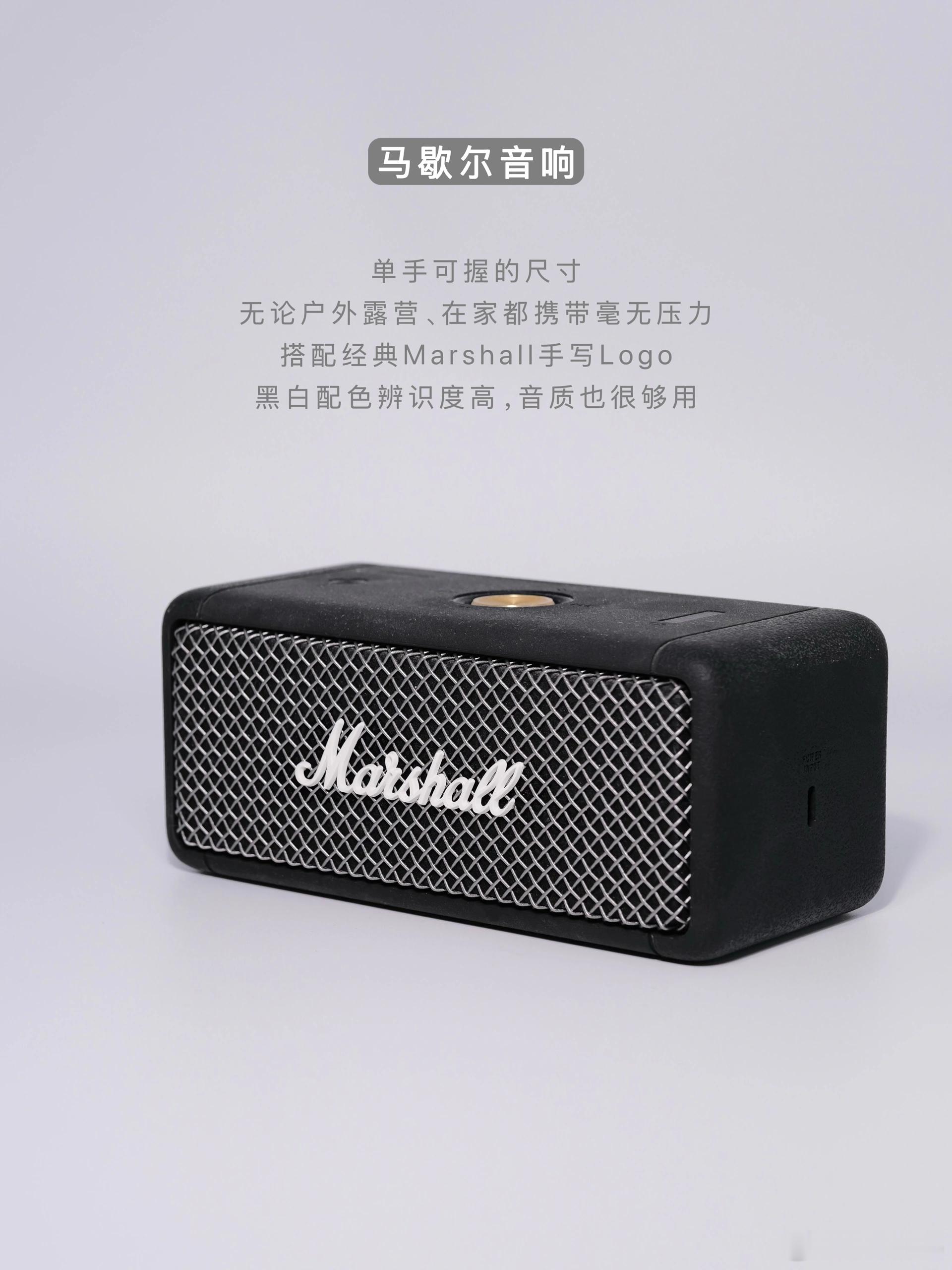 单手可握的尺寸,无论户外露营、在家都携带毫无压力,搭配经典Marshall手写Logo,黑白配色辨识度高,音质也很够用~