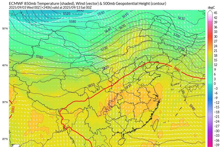 9月副高还将偏北偏强,有可能北到我国东北地区,警惕偏强秋老虎 昨天发文说过,今年的秋老虎可能有点厉害,数值模式认为今年9月副高位置将偏北,强度将偏强。最新的数值预报结果更加离谱,以EC模式为例,其预计9月中旬副高将扩张加强,华中地区、华南地区、华东地区都将处于副高之中,代表副高势力的588线甚至可能北到辽宁南部。更长远来看,到了9月下旬,华东地区、华中地区仍可能受副高控制,甚至辽宁南部也可能继续受副高控制。 总而言之,今年9月,华中地区、华东地区等地的高温天气可能仍然较多,秋老虎偏强的可能性较大。