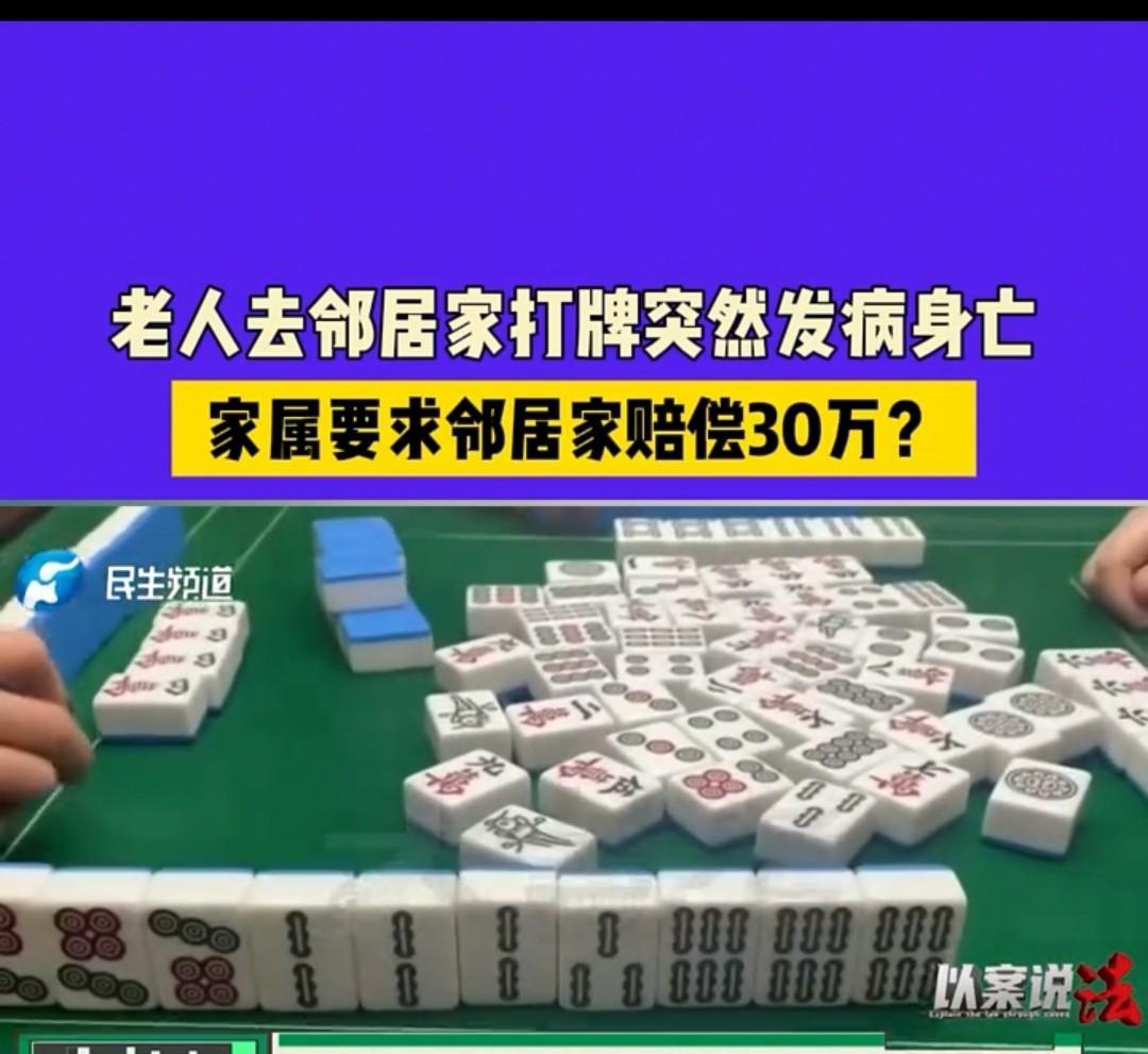 湖北武汉,男子到邻居家打牌时,突发疾病离世。其家属要求邻居赔偿30万元,最终邻居