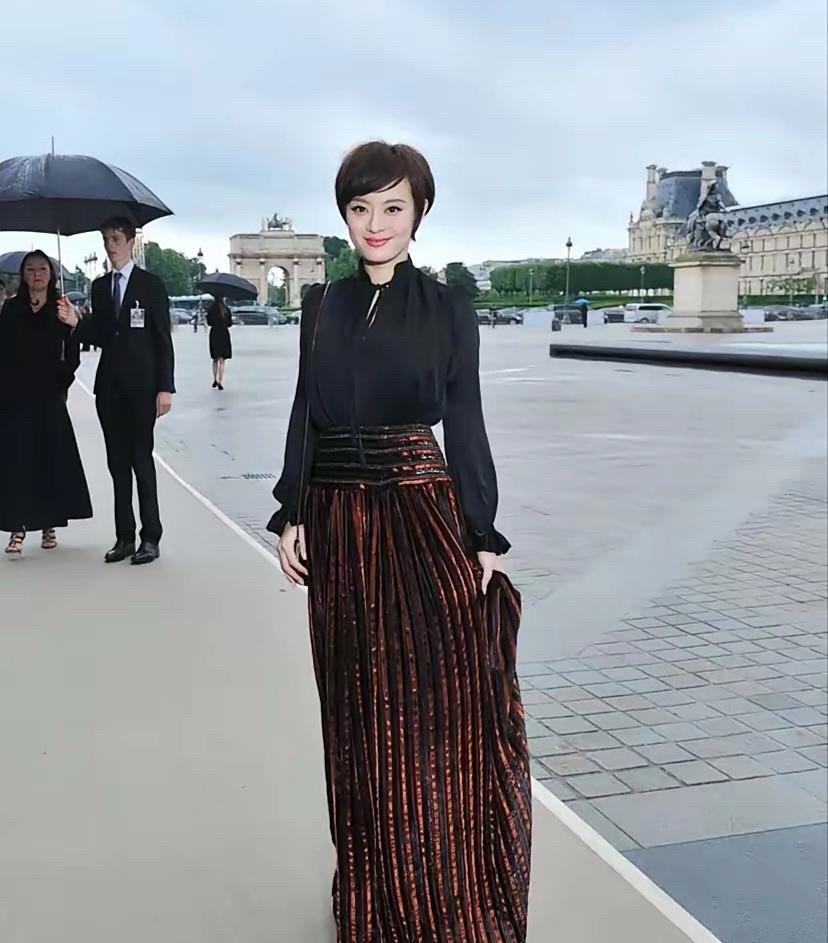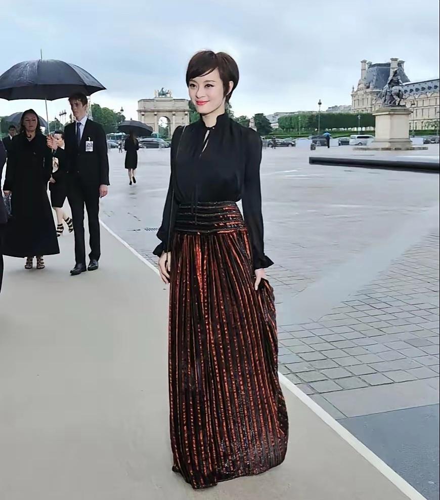孙俪法国亮相,法国的活动现场,她身着一袭黑衬衫搭配红棕色珠片长裙,一亮相,那强大