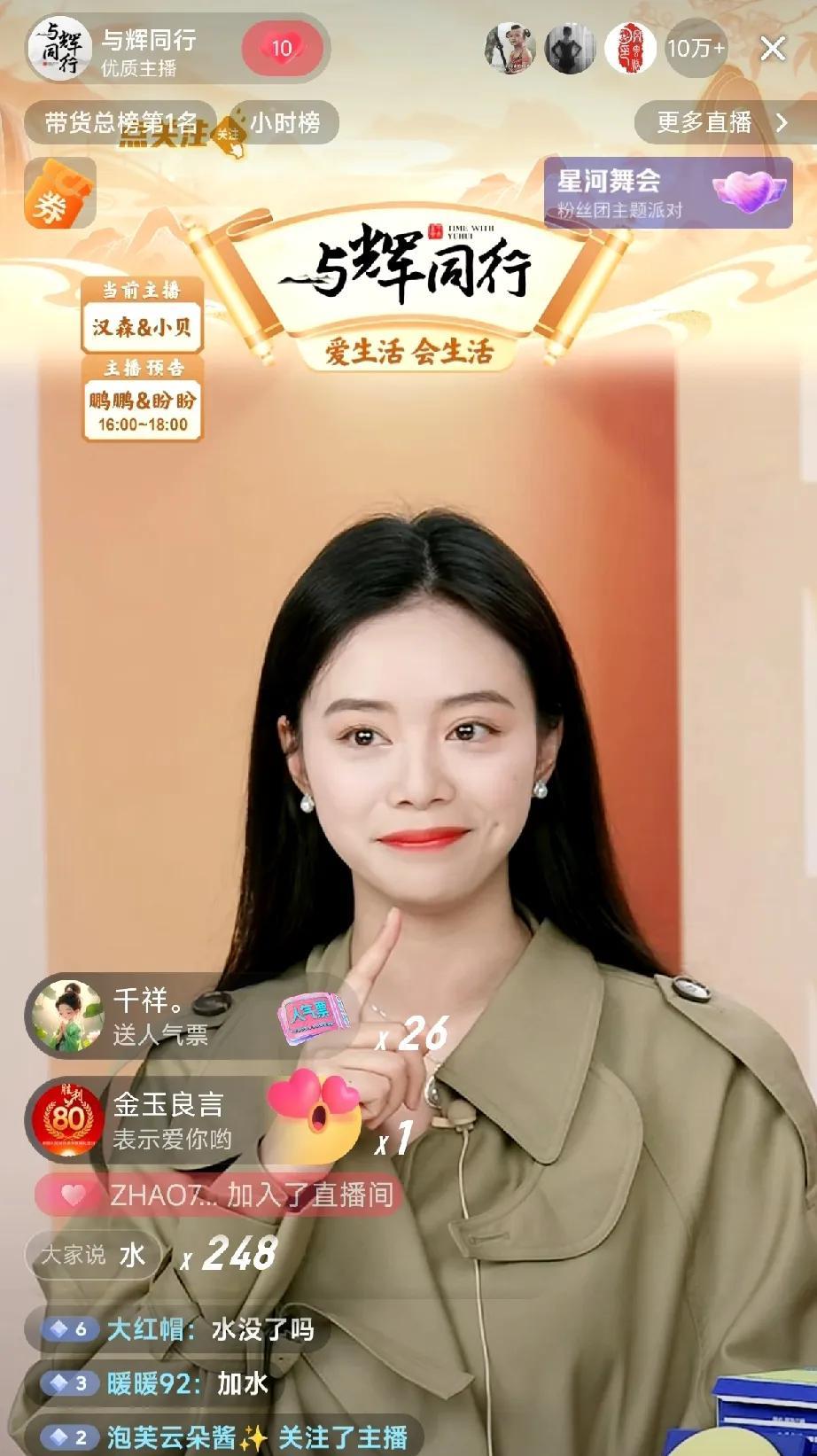 10万+! 与辉同行今天下午两点开播,在线人数竟然半个小时内都是10万+,要知道
