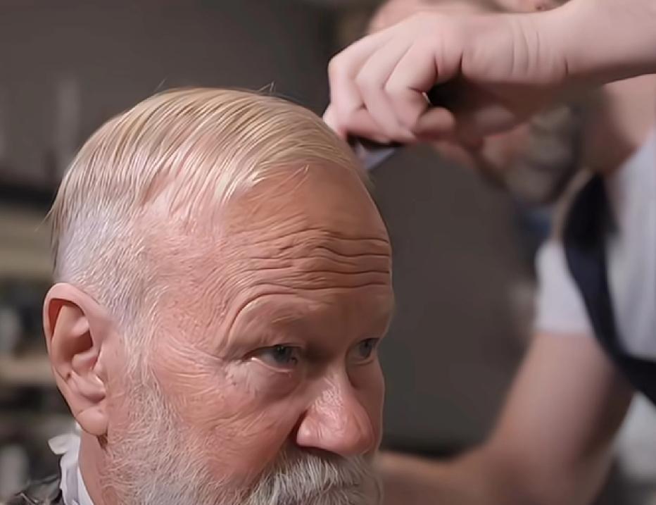 有一个发现,现在老年男人理发都习惯把头的两侧推光,然后头顶上留出两寸到两寸左右的