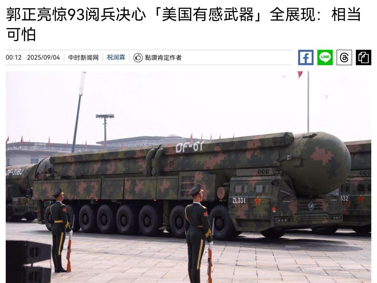 对于9.3阅兵,郭正亮表示,中国大陆真的是下了非常大的决心,而美国这一次一定非常有感!9月3日,根据岛内媒体报道,对于此次大阅兵,郭正亮表示,中国大陆把他会对付美国,让美国有感的所有的武器都展现了!这相当可怕!因为美国懂的人非常多,这包括核武的布局,东风-61导弹都出来了。 核武发射的陆、海、空,全部都出来了!巨浪-3也出来了,惊雷-1也出来了,那都是面对美国!然后针对第一岛链、第二岛链的区域拒止,反介入,也通通都出来了。水下的潜航器,对付美国的战略核潜艇。鹰击-19、鹰击-21,专门对付美国的航母。郭正亮认为,中国这就是秀给美国看的,目的就是要让美国不要插手台湾问题。 对于郭正亮的观点,我们怎么看呢?无疑,郭正亮的观点是非常有道理的。我们举行大阅兵,一方面是纪念抗战胜利,牢记历史,另一方面,也是对那些不怀好意的国家发出震慑性的信息。在中美博弈,美国把我们当对手的情况下,韬光养晦已经不可能,以武止戈,才是我们的上策。我们通过集中展示新型装备,最起码要对美国传递出两个信息。 其一,我们是要借此告诉美国,不管美国如何处理中美关系,美国都不应该动使用军事手段解决问题的念头。其二,我们毫无疑问就是告诉美国,美国不应该插手台湾问题,我们已经完全具备了震慑,反制域外势力干涉我们解决台湾问题的能力,美国也不应该对此有任何误判。很显然,这样的大阅兵当然是我们精心策划的结果,相信我们把这些信息传递出去之后,美国也会更加谨慎的与我们打交道。